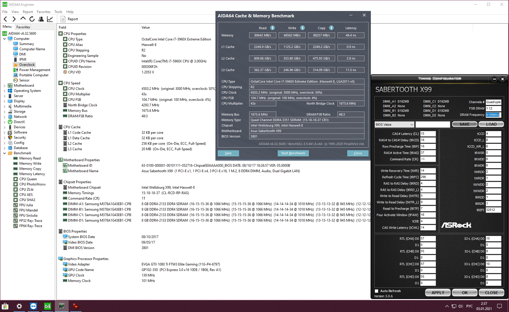 Infreader, у его память работает на 2200, ниже штатного режима, поэтому и может понижать напряжение контроллера памяти ниже 0.9в, а при разгоне выше 3000, стоит его поставить в районе 1-1.1в. У меня ТМ5 может 2 часа не быть ни одной ошибки, а потом просто в браузере или игре синяк из-за памяти. Сейчас SA стоит 1.05в при частоте 2800 и зажатых таймингах.[/quote] Здравствуйте, спасибо за советы! У меня старая память тоже только на 2666 получалось ужимать. Щас взял джискил типо бюджетный там радиаторы говно, но я с алика захреначил кастомные из алюминия ). ВОт у них xmp профиль 3200 cl 14. Легко руками настраиваются 3400 cl 13-14-14-36 я раньше тока мечтал о такой. Ну самые минимальные задержки 47 у памяти получалось выжать при trfc 250. Потом разжал кое какие значения, ну тоже много всяких инструкций вот последнее у геркона понравилось с ютуба. Щас в районе 48-49 задержка памяти и прокачка 85000 мб по всем направлениям, а копирование даже 87000 почти. Но это у меня стоят 4 плашки памяти в 4канале короче заняты 4 слота из 8. Если я вставлял 8 модулей у меня появлялись какие то рывки в играх и все такое но при этом опять же не было никаких ошибок, а прокачка и задержки были примерно такие же но при этом требовалось мегьшая частота и можно было расслабить тайминги. Короче я пришел к выводу что на моей матери + проц лучше всего для игр подходит 4 одноранговых модула 9хотя я двуранг не пробовал) но вот если забиваю все 8 слотов, то во всяких тестах результаты лучше но в играх становится на много больше подергиваний. Такая же точно история была с 1660 v3 #77 Добавлено спустя 1 минуту 35 секунд: