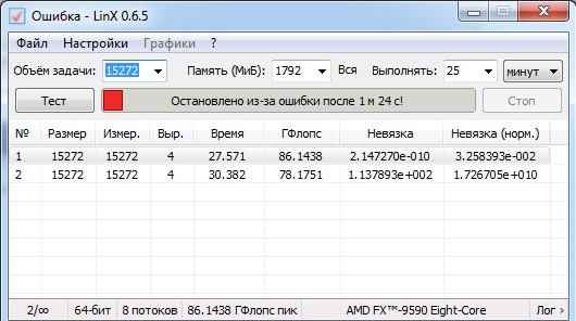 Развернеул кулер, теперь мост не перегревается и частота не скидывается. Только линХ иногда выдает ошибку если поставить 6144 гб, поставил 12 гб 10 минут тест прошел идеально но гигафлопсы мне конечно же выдать не успел... Почему могут возникать ошибки если выбрать мало оперативы? Процессор на стоке без разгона.
