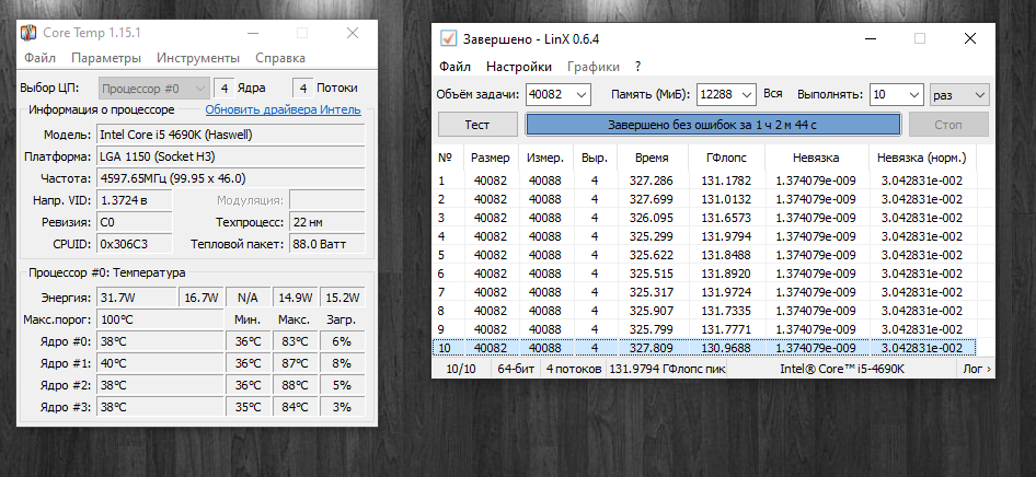 0.6.4. линкс не самый лучший тест стабильности. Можете конечно оставить, час - это более-менее приличное время тестирования, а можно еще что-нибудь прогнать. Что-нибудь что не разогревает проц до троттлинга. 0.6.5 и новее - будет троттлинг скорее всего, горячий. Попробуйте прайм95 v28 в режиме Custom c FFT Size побольше (чтобы не разогревал до сотни, скажем 512k или 1024). Этот параметр задается диапазоном, можно выставить 512-1024 (min-max) ну и с пол часика, минут сорок хотяб погонять. Но тема методики тестирования стабильности достаточно обширная. Если коротко то любая ресурсоемкая задача кодер, рендер может быть тестом стабильности (x264-265btnchmark/Blender), если вы можете ее крутить достаточно долго. Спец тесты типа последниих LinX для процессоров с термопастами под крфшкой противопоказаны ввиду их непомерного жора электроэнергии, они разогревают проц до троттлинга так что чтобы ими тестировать нужно делать скальп в обязательном порядке. В то время как вышеупомянутые кодеры и рендеры могут крутиться с приемлемой темпой.