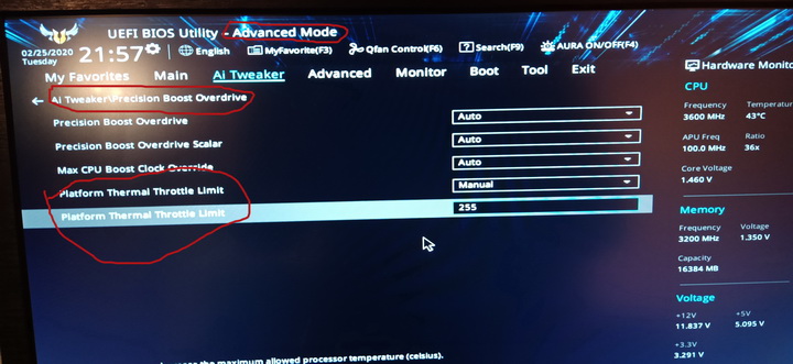 Похоже? UPD. Поставил максимальное 255, протестировал - не оно. Так же 70-71С и уже 3.82ГГц. Возможно, нужно лимиты в первом Auto настраивать. Там аж три штуки в выпадашке нашёл.