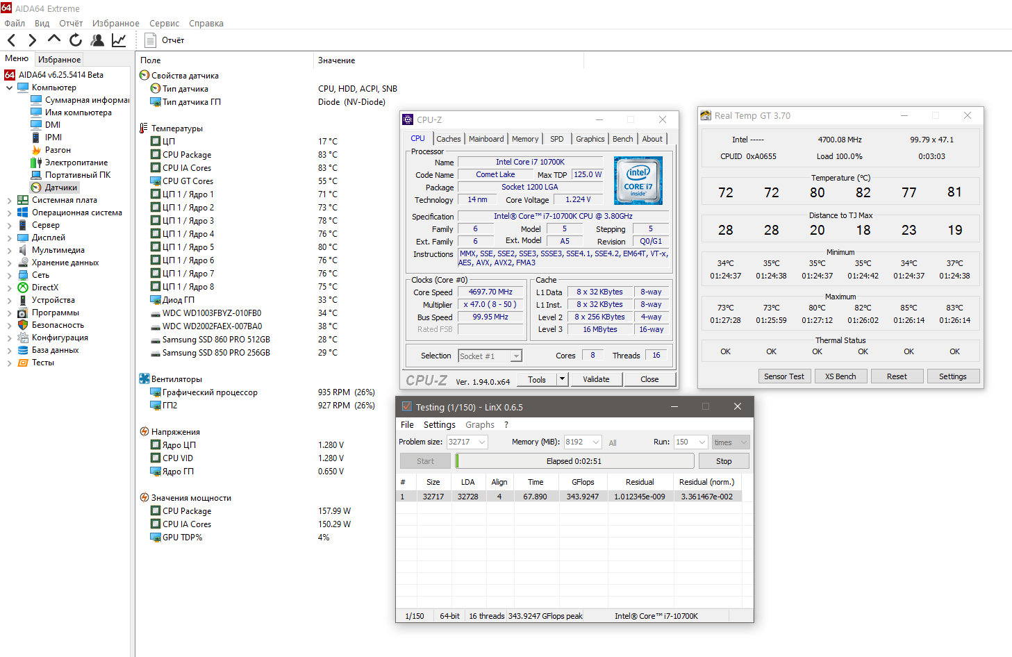Окружающие условия одинаковые, охлад - CNPS10X Performa. Вывод: скальпирование с заменой пасты на ЖМ - совершенно бесполезное занятие, никакого смысла нет. Что в очередной раз подтверждает выводы уважаемых диванных экспертов.