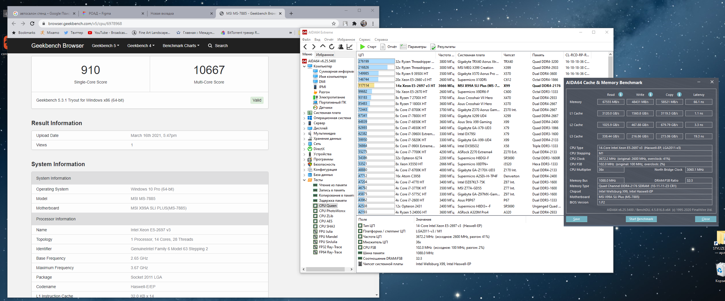 анлок сделал все ядра бустят на 3.67GHz, но при тяжёлой AVX нагрузке до 3.1-3.3 снижается(с шиной больше чем 102 может синька проскакивать). Андервольт ядер -60, кеш -20. Выжимать каждый процентик просто нет времени, главное стабильность сейчас. На самом деле 14 ядерник по производительности не сильно далеко от народного 2678v3 ушёл. Вот 2699v3 это уже мощь, но цены на них слишком большие.
