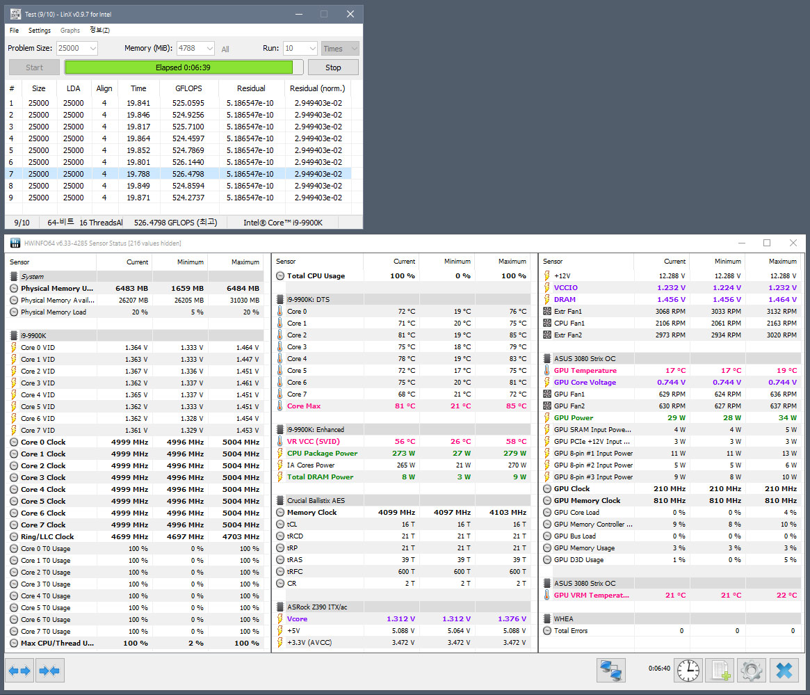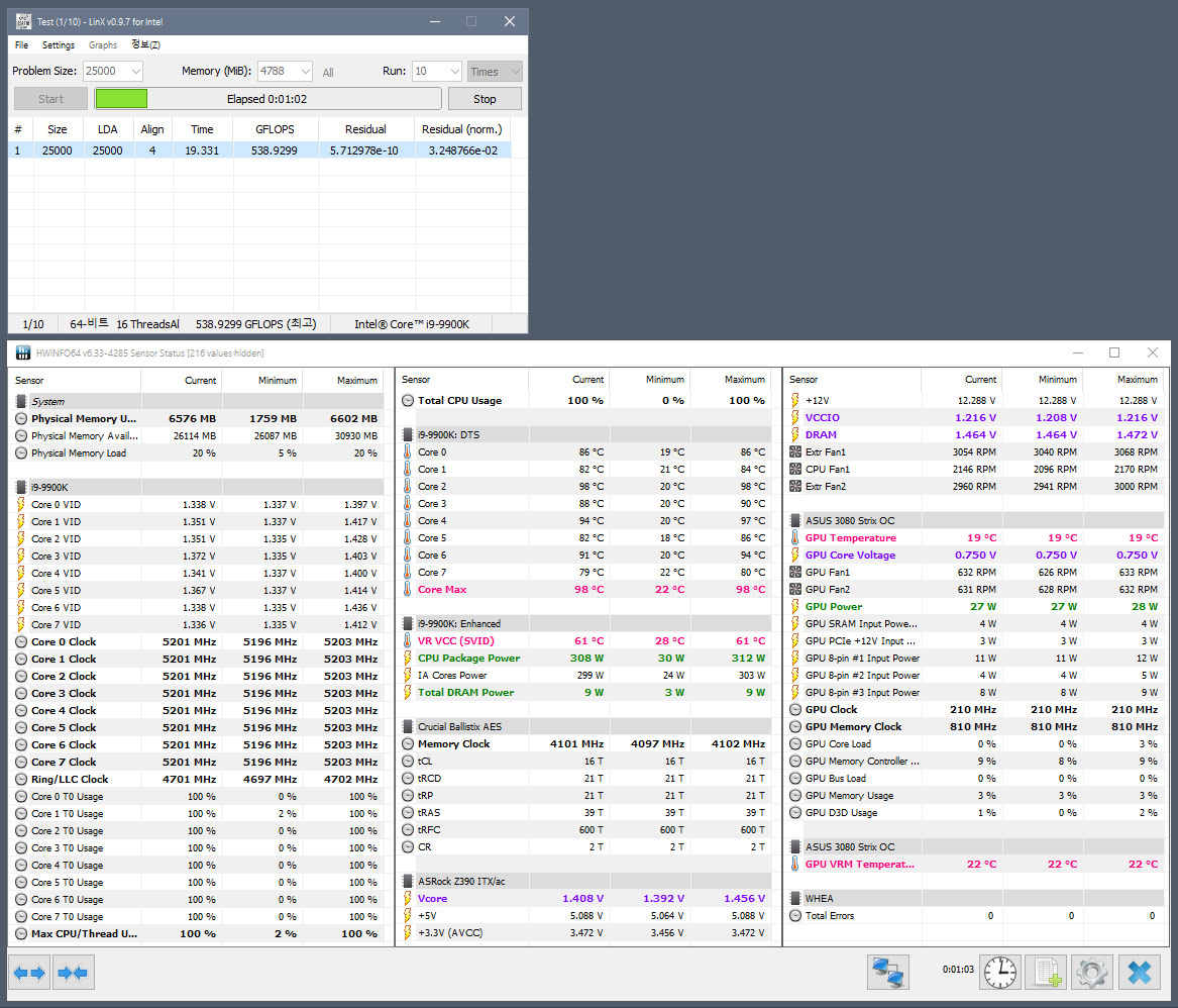 У меня бывает и 350 и 420 Вт, на воздухе, температура по одному ядру до 97, остальные 80 с лишним. Зачем мне гонять Линксы, если в работе все ок? По всем тестам, что я видел, NH-D15 равен трехсекционной СЖО.