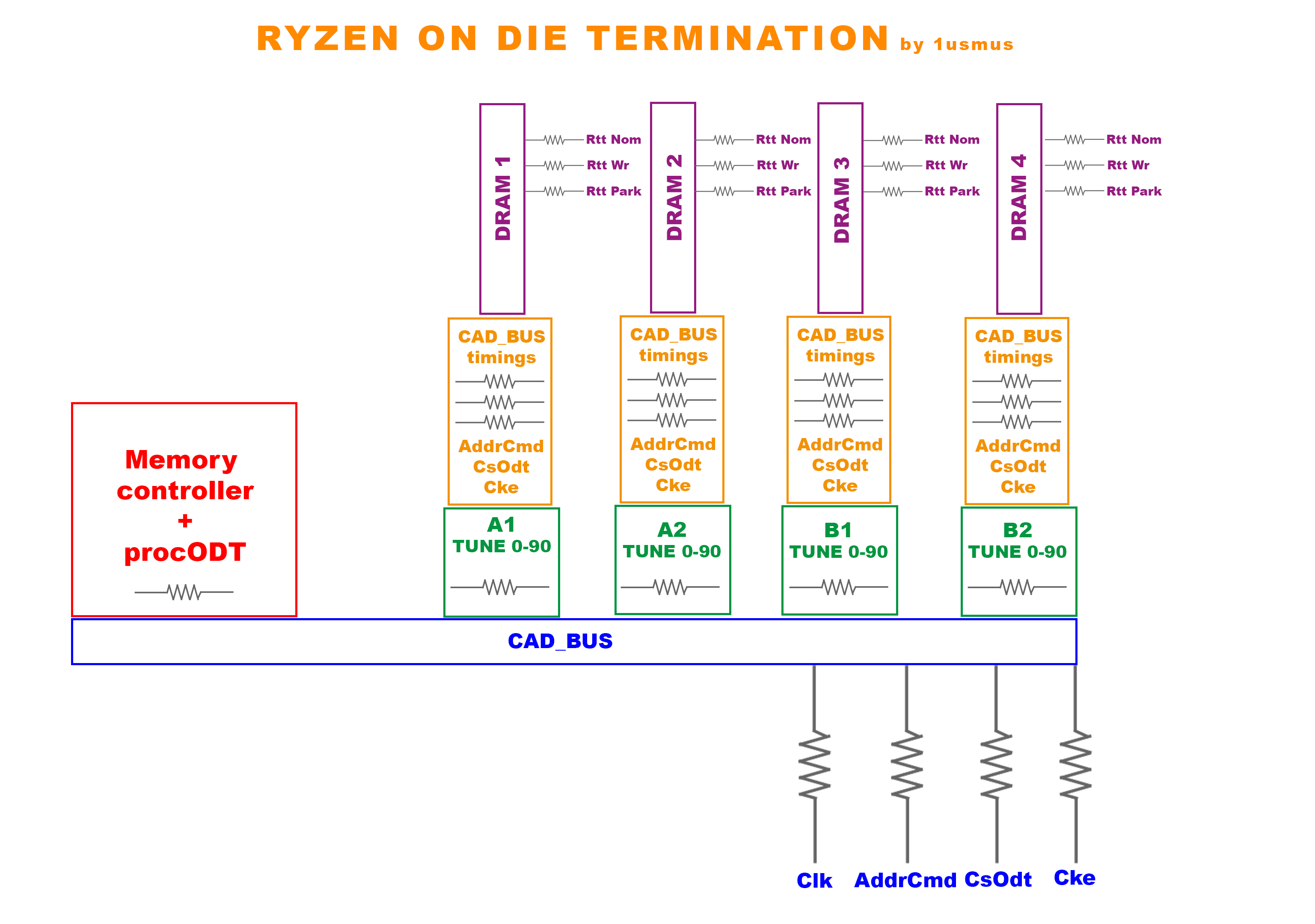 procODT: Чем меньше значение procODT (сопротивление) на котором работает ваша память относительно эталонной (53 для сингл ранка при частоте 3600 и 60 для дуал ранка при частоте 3266) тем выше частотный потенциал памяти, это постулат.