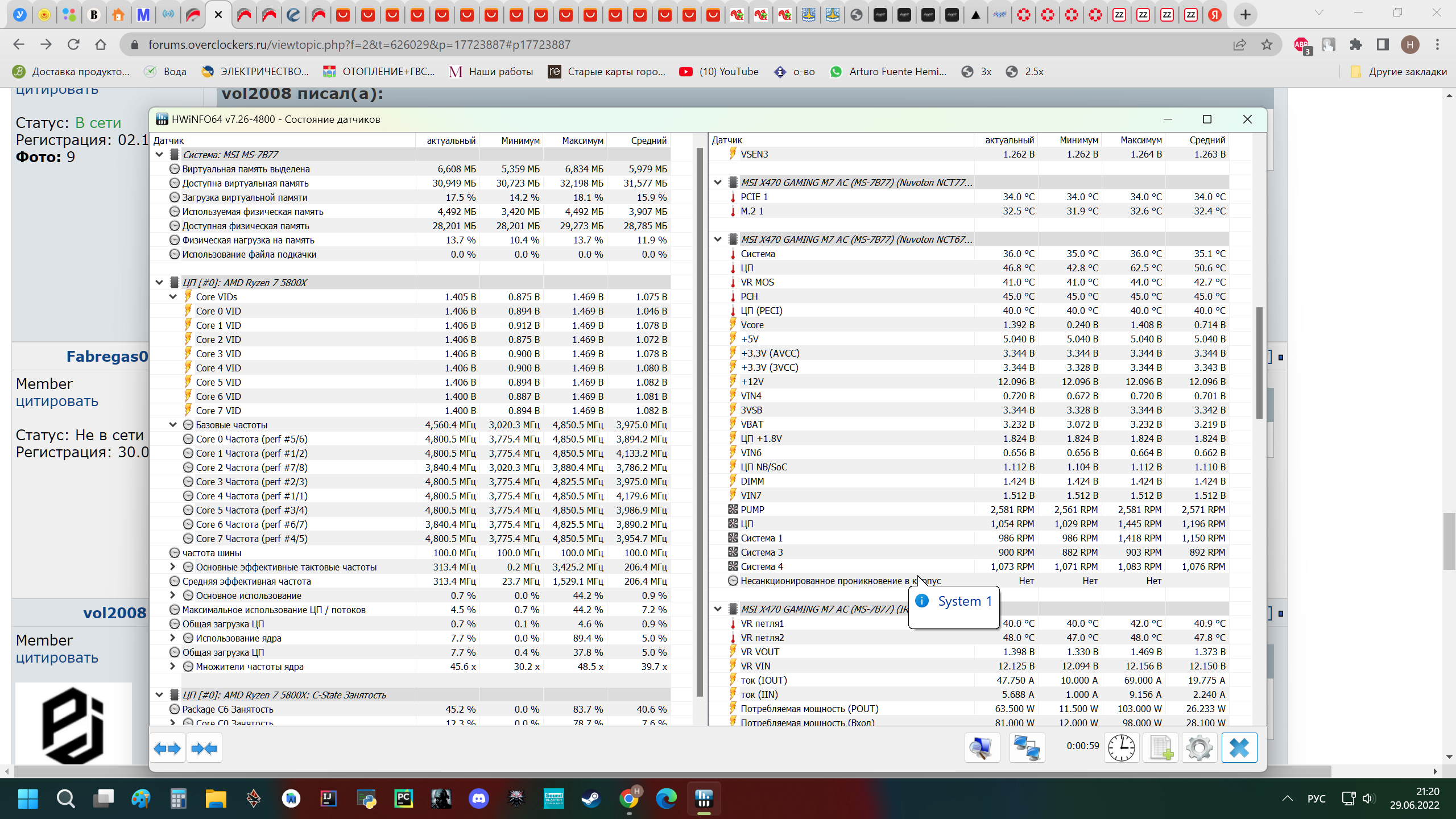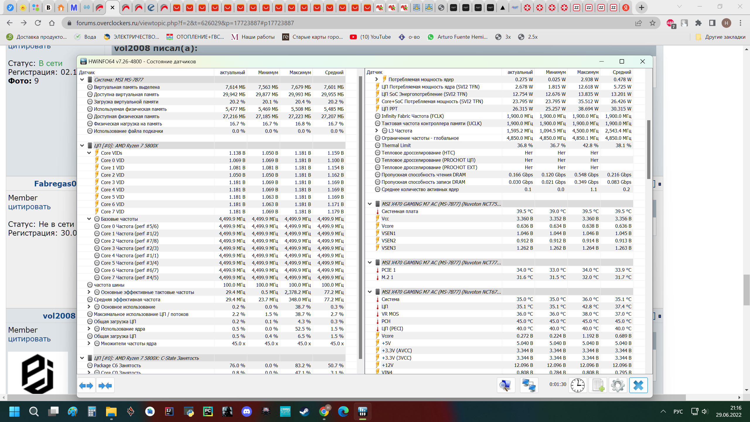 Попробую в картинках показать - так будет наглядней. Опять же это моя ситуация, может у кого по другому Лимиты по потреблению в биосе Motherboard Сценарий один , запущена система . Открыт браузер , полазил по вкладкам - ну и своя жизнь Win11 Фикс 4.500 1.18в