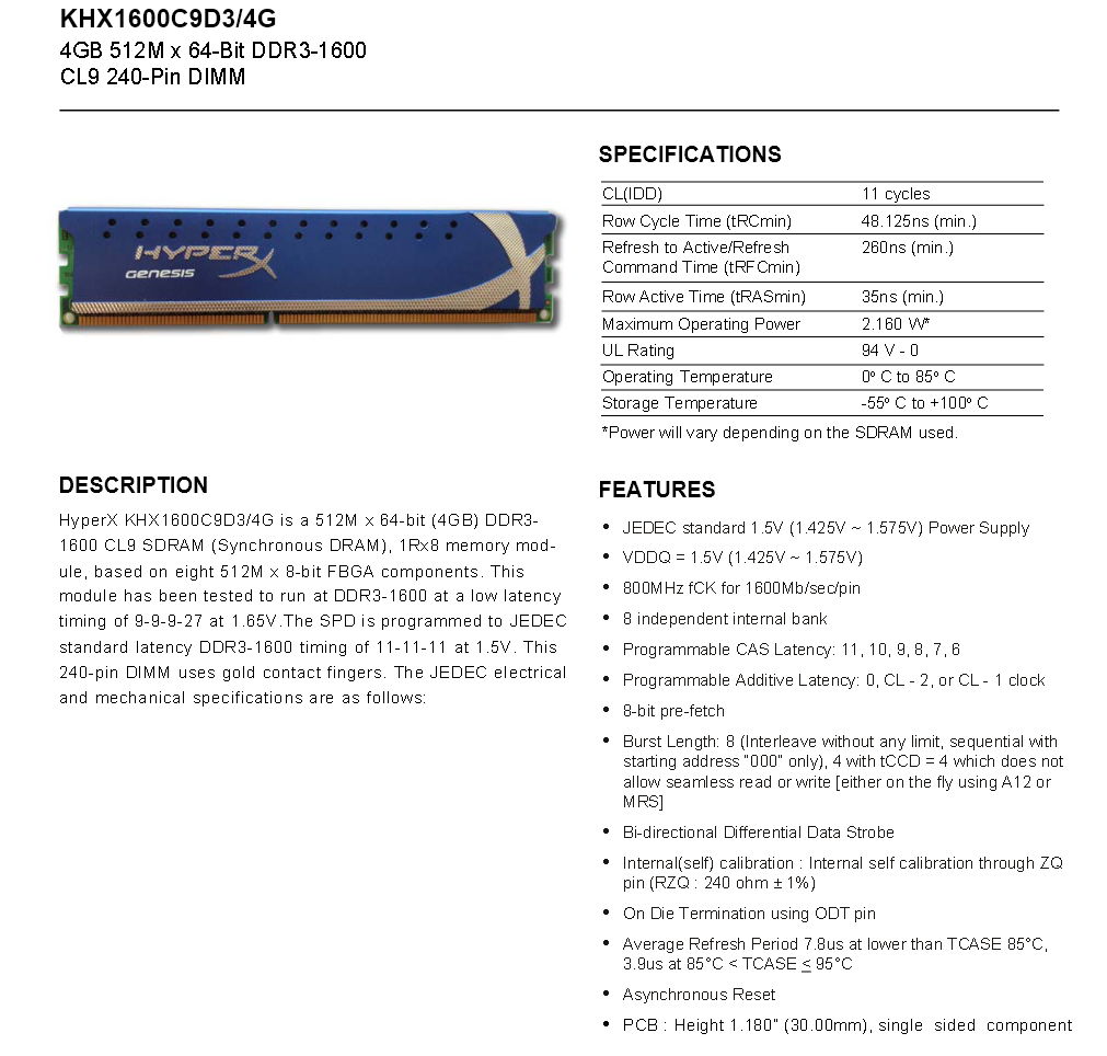 он чуть выше ) там сказано , что TDP 2,160W , я рассуждал так : если 2.160W : 1,65 x 1,2 = 1,570W теперь 1,570W : 1600 x 2200 = 2,16W то есть , тепловыделение и потребление памяти соответсвует точно такому же как было на DDR3