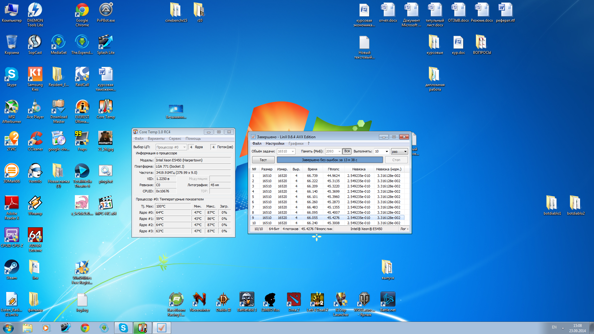 Посоветуйте напругу для e5450, с той что на скрине linx выдаёт ошибку через 3-5 мин после запуска.На частоте 3.33 с такой напругой работал нормально, linx проходил без ошибок.