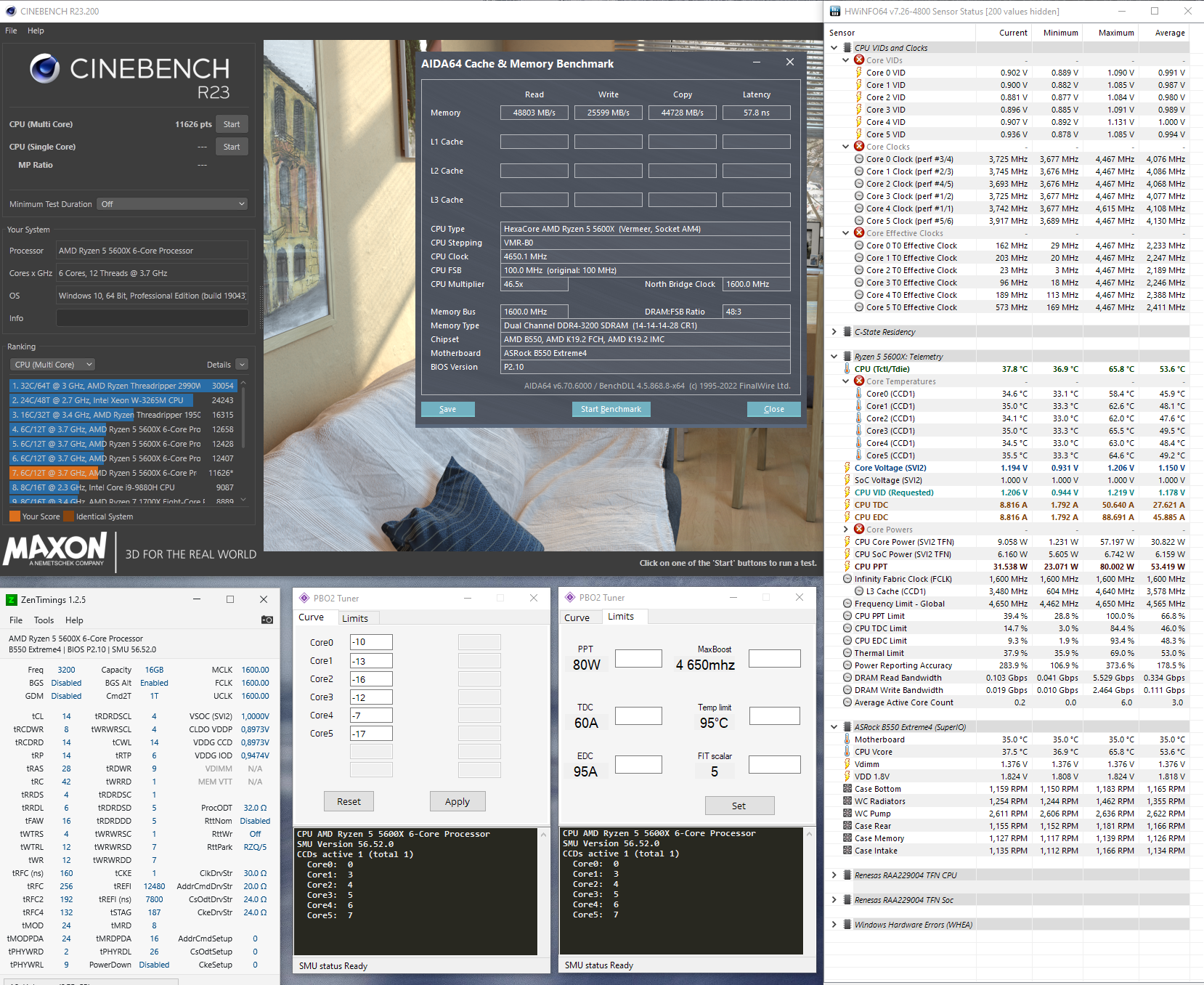 Лично я выставил сразу лимиты по максимуму что может VRM материнки и сколько может переварить охлаждение. Precision Boost Overdrive Scalar чем больше значение, тем позже и менее агрессивно процессор сбрасывает частоты после того как пропала нагрузка. Выставил на максимум. Что касается Load-Line Calibration то для всего кроме VCore выставляю в самое агрессивные значения, хотя и для VCore тоже. Precision Boost берёт во внимание показания именно мониторинга, а не запрашиваемое значение. Мониторинг материнской платы читается Precision Boost`ом через такой протокол как SVI2 TFN. Технология заключается в следующем: 1)выставляем Желаемый VCore Offset, если выставляем его в сторону увеличения, то малопоточная производительность будет выше, если в сторону уменьшения то многопоточная производительность будет выше. Под каждую настройку VCore Offset надо подправлять значения Curve Optimizer, 2)сначала для всех ядер уменьшаем Curve Optimizer, 3)запускаем скрипт, упомянутый выше, повторяем шаг номер 2, пока ни начнёт вываливаться ошибка на одном или нескольких ядрах и откатываемся на один шаг 4)запускаем после этого Cinebench R20, с большой вероятностью система просто перезагрузится, это по большей части лечится добавлением CPU PLL напряжения с 1,8V, но не превышая 1,9V, хотя от чрезмерного напряжения PLL может начаться обратный эффект и стабильность пропадёт, 5)далее начинаем настраивать Curve Optimizer для каждого ядра отдельно и проверяем стабильность как в шагах 3-4.