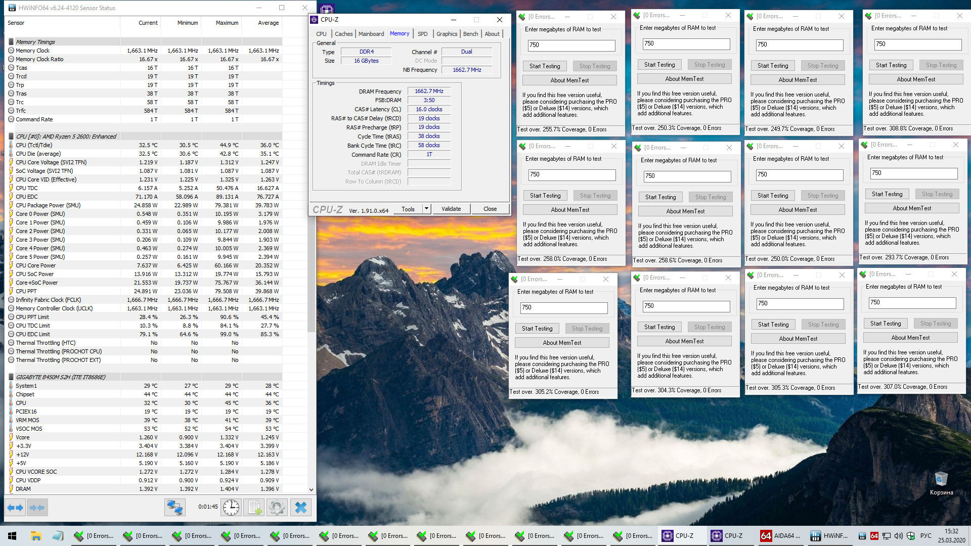 по отдельности всё пашет. а вместе - губит мне камень и я лопух - час гонял мемтест. то то я думаю 3333мгц с 16-19-19-38 погналось по третьему круту 0 ошибок... как думаете - деграднул?) температур выше 50С не было (холодно у нас тут)