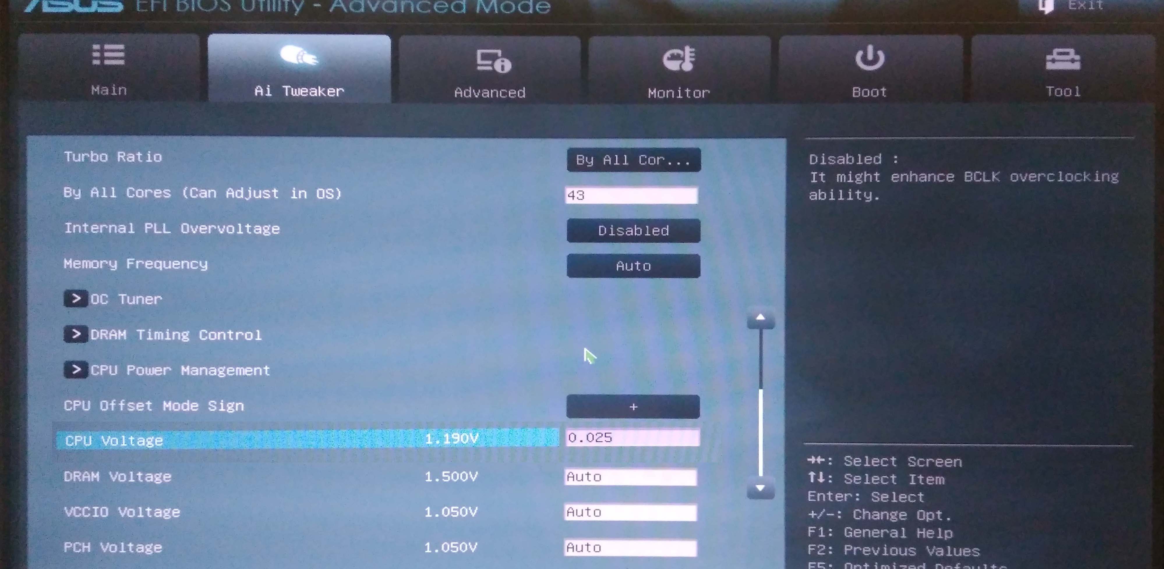У меня есть еще один вопрос, 1.3v не должно привышать в биосе? или во время тестов? если в биосе - то у меня получается просто сильный недобор и мне надо намного больше ставить оффсет