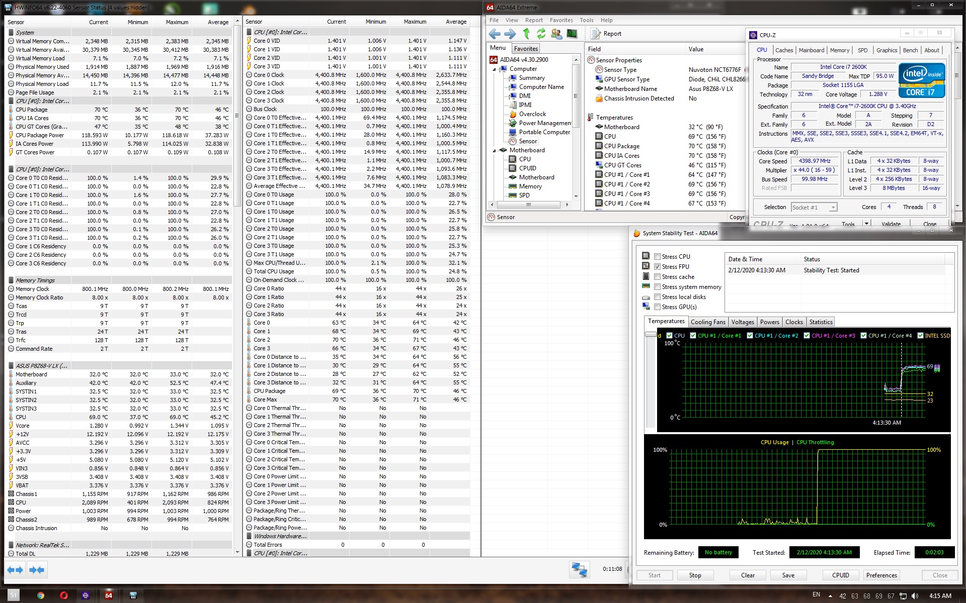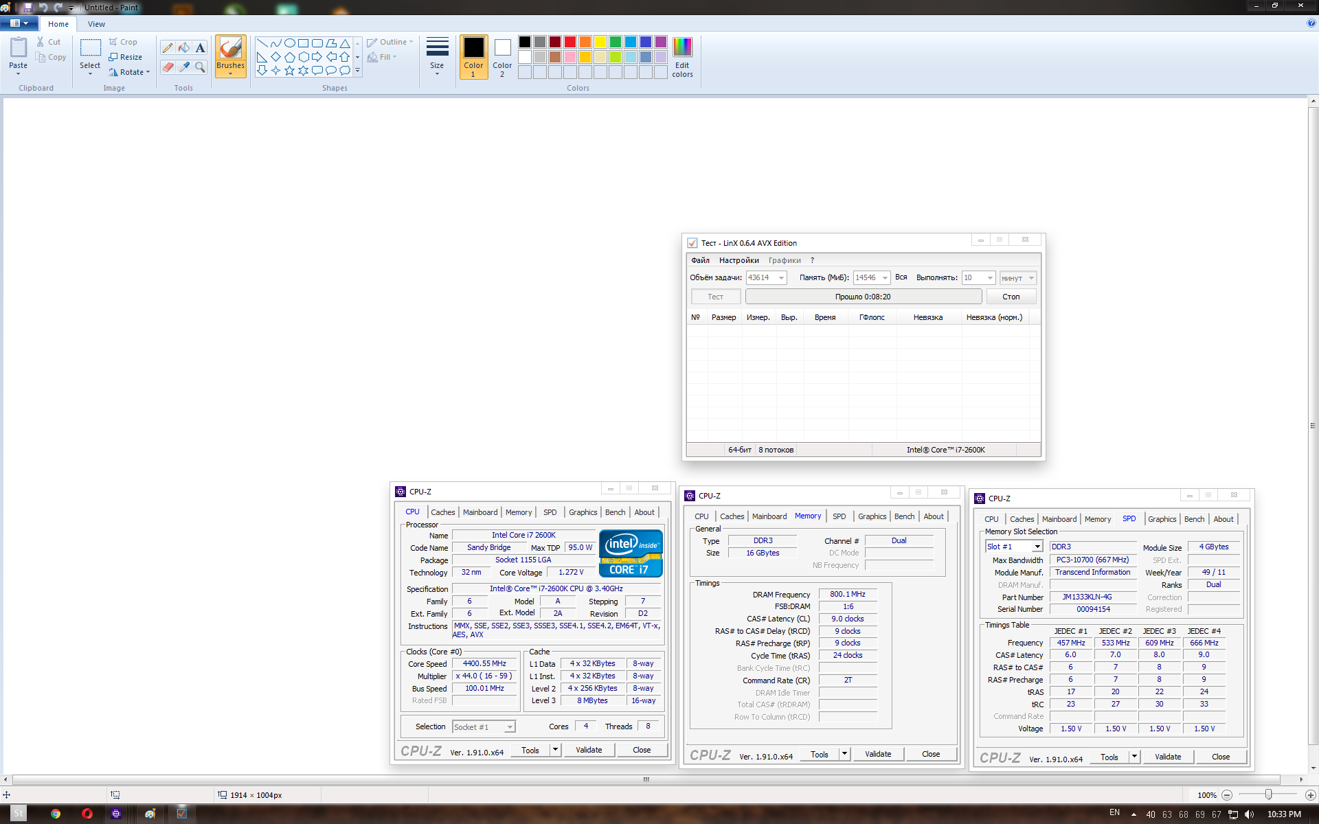 CPU 4400 Mhz В bios стоит 1.205V (0.040) *почему то когда ставишь 0.040 то число пишется желтым цветом а не черным как когда от 0.005 - до 0.035. В AIDA64 system stability test cpu (2 минуты) - 1.304V , температура до 57С В AIDA64 system stability test fpu (2 минуты) - 1.288V , температура до 69С - А вот с LinX 0.6.4 интересней. Если в bios стоит (0.035) + память 1600 MHz -то на 7й минуте вылезло системное окошко ОС "linpack_zeon64.exe has stopped working" -> Сlose the program. Если в bios стоит (0.035) + память 1300 MHz -то на 2й минуте минуте синий экран. Если в bios стоит (0.040) + память 1300 MHz -то на 7й минуте минуте синий экран. Если в bios стоит (0.040) + память 1600 MHz -то тест проходит без ошибок (выбран 10 минутный тест) (0.040) - это когда в bios стоит 1.205V (0.040) а во время теста - показывает 1.304V , температура до 69С. - *Собственно система работала и при оффсет 0.030 но prime95 сразу уходил в синий экран, поэтому оставила 0.040. с 0.035 \ 0.040 prime95 не уходит в синий экран но выдает какие то ошибки (см.скриншоты). *иногда я замечала кратковременные скачки core voltage до 1.328