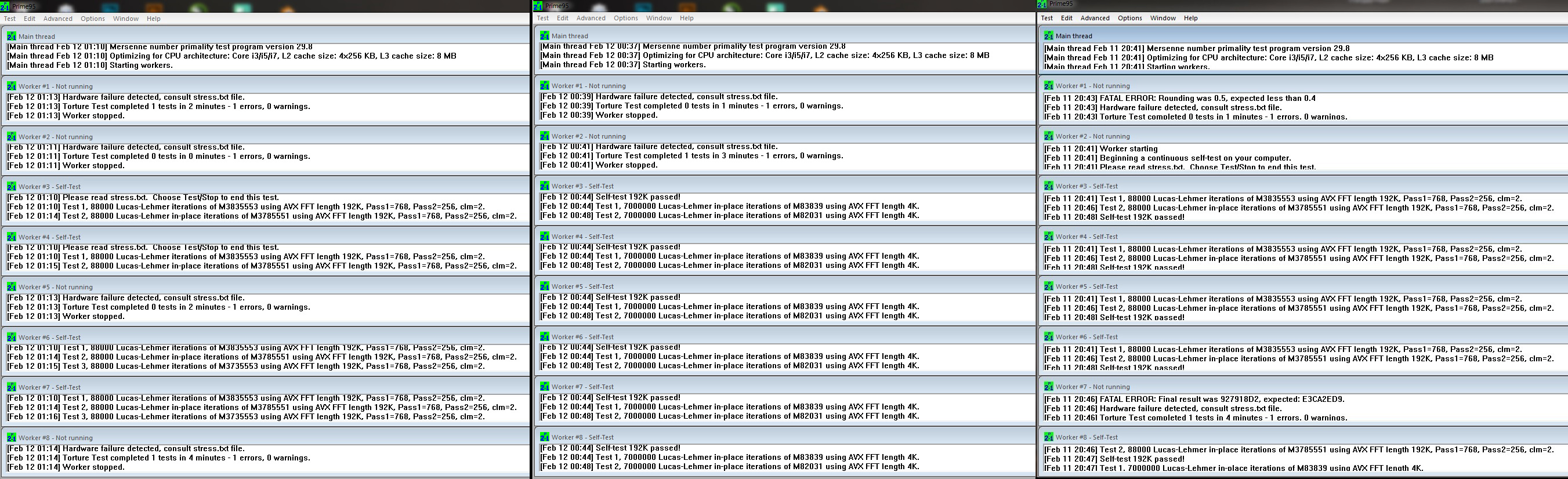 Продолжаю тестировать... prime95 Множитель х43 проходит тест prime95 (10 минут) - на 0.035. На 20й минуте - первая ошибка. Дальше не стала проверять поставила 0.040 - сейчас тестирую.. Множитель х44 выдает ошибки в первые пару минут - 0.040 \ 0.045 \....\ 0.065 ! сколько можно завышать.. ошибки не уходят! что-то явно не так с настройками!