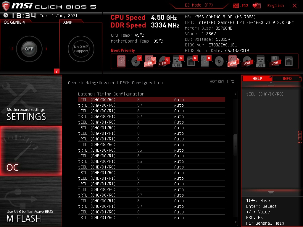 Господа хорошие, может кто-то с Samsung B-Die Single Rank в четырёхканальном режиме на 3200/3400 поделиться скриншотом вроде нижепредставленного? Тайминги на 3000CL13 нащупал сам и с помощью BOBKOC'а, память стабильно себя вела с 5960х. Сейчас поставил её в другой блок с Asus Rampage V Edition 10 + i7 6950x. Ядра поехали 4200, кэш 3600, на стабильность проверены. Сейчас занимаюсь сексом с оперативной памятью, заводится на 3000 и 3200, и 3333, и 3400, но стабильность есть только на пресете, который был на 3000: