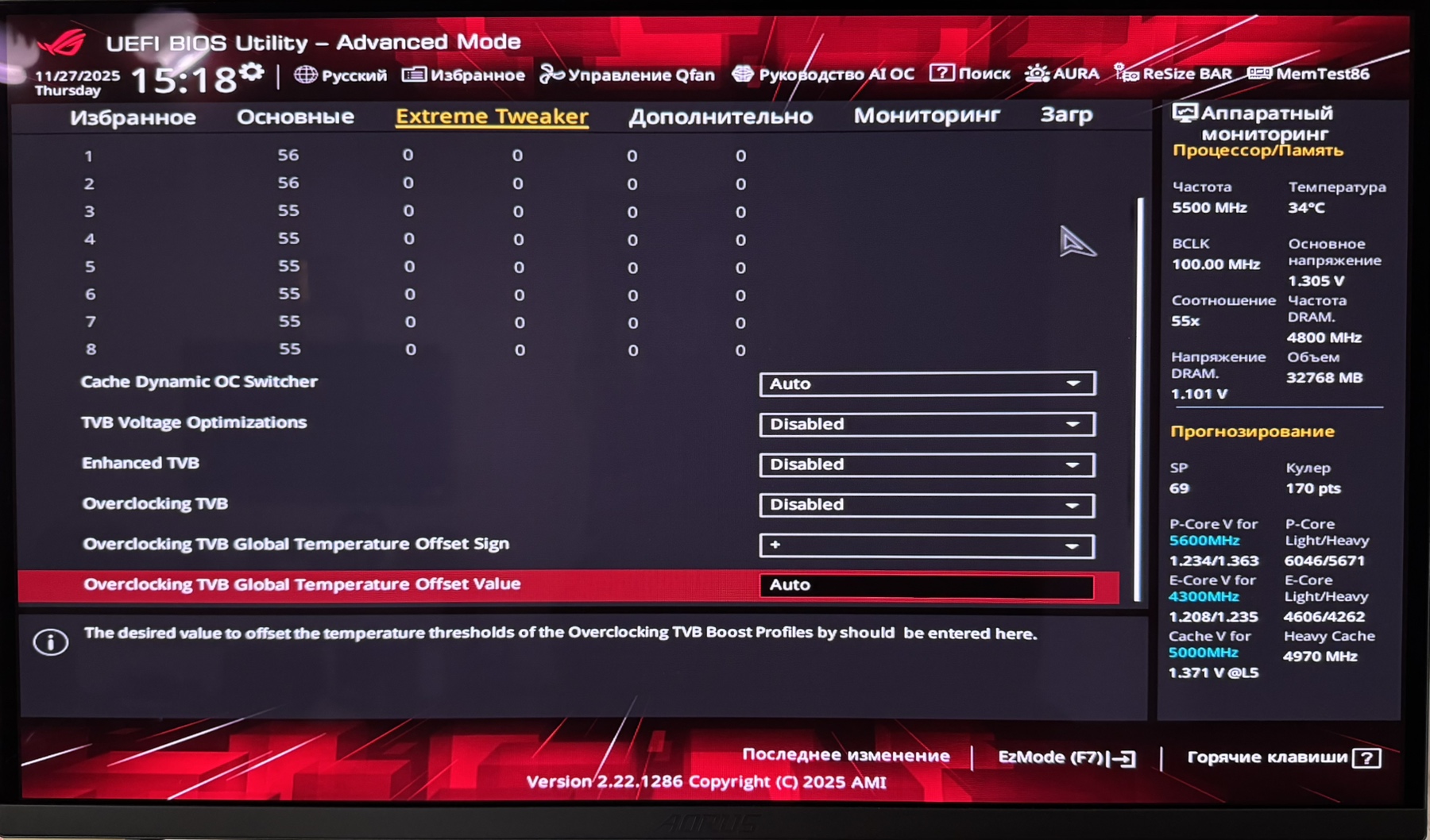 Добавлено спустя 2 минуты 48 секунд: Опцию Enhanced TVB выключать не нужно. Её отключение так же отключает лимиты напряжения и прочие изменения, которые Интел сделал своими патчами. Довольно контринтуитивно, но так оно работает. По сути, отключение ETVB выключает почти все интеловские патчи от деградации.
