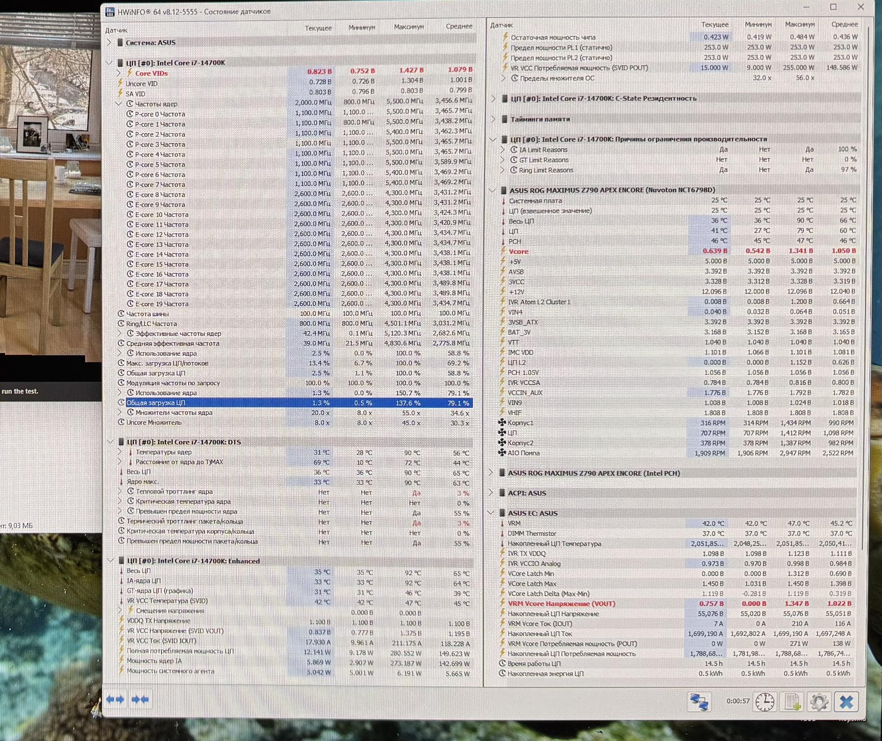 С виду вроде норм. Там лимиты не только по потреблению могут быть, но и по току, например. В HWINFO есть показания "причина ограничения производительности", на скрине надо раскрыть IA, Ring и наблюдать в процессе теста. И можно скрины экрана делать кнопкой Print Screen на клавиатуре, потом вставлять в Paint. Гораздо лучше выглядит без ряби монитора.