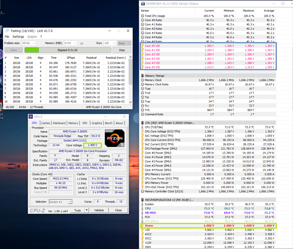 А так, похоже поймал почти "путинскую стабильность" с множителем 41.00, ЛЛС2 и оффсетом -0.0125. Пробовал задирать VCORE и LLC4. Тоже самое. Похоже это уже недостаток материнки, слишком большие шаги напряжения в настройке.