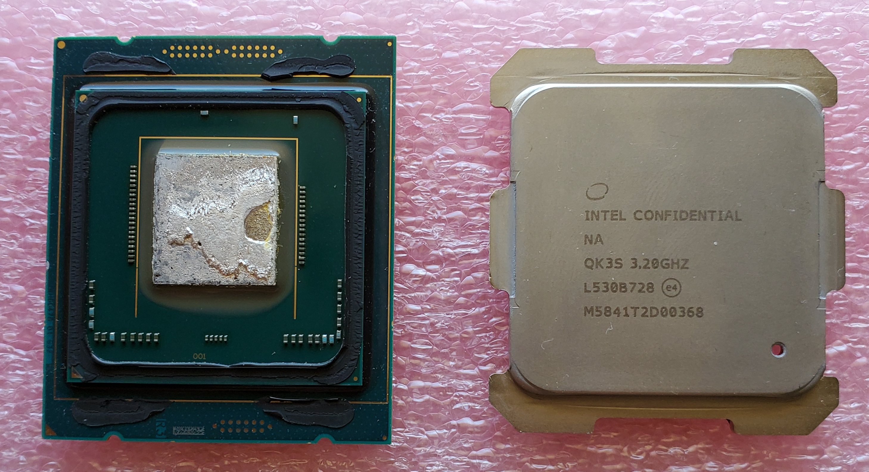 Опыт в скальпировании есть и удачный I7-4790K , этот I9-9900K не скальпировал я его из сокета вынимал за 4 года один раз сейчас и всё , проблем не было процессор всегда работал в стоке с разгоном ради интереса ненадолго , опер. память в разгоне , так бы и раньше не разбирал если бы память работала как раньше с 4 планками. Никаких видимых следов неправильной установки , поломок нет кроме царапины или треснутой крышки и отказа работать с 4 планками опер. памяти нет .