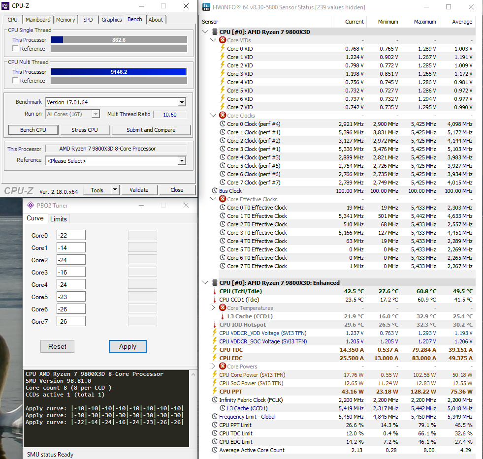 А бывает 9800x3d такой не удачный, что максимум: аll core "-13"? Только такая нормально крутится в Аида (CPU+FPU+CACHE). в С23 и больше берёт, хоть "-30", но не Аида.