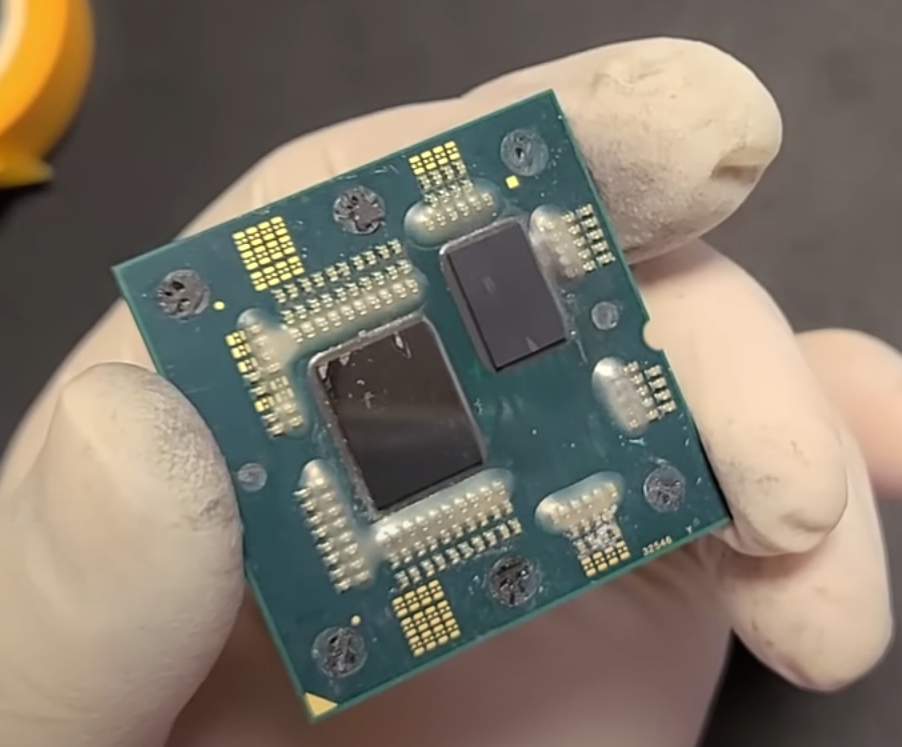 Вот это видео, кстати, с x3d процессором(упаковка одинакова с обычными), где der8auer после трепанации и работы бритвой замачивает в ЖМ кристаллы, чтобы смыть индий.