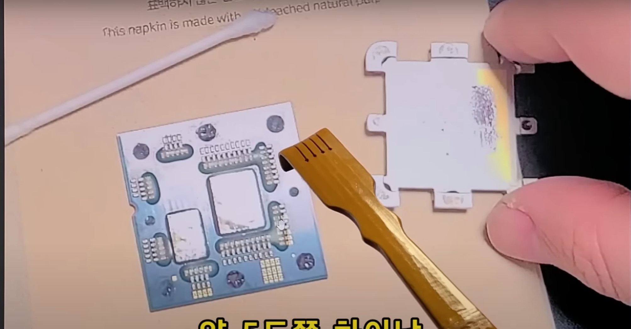 с привязкой ко времени, публикую чтобы удержать товарищей от недостойных поступков . der8auer кладёт специально много ЖМ, хотя он и не довел дело до конца, как корейцы, члены клуба утюгов-микроволоновок, у них были идеально чистые чипы: https://youtu.be/wejrzPPBtL0?t=300
