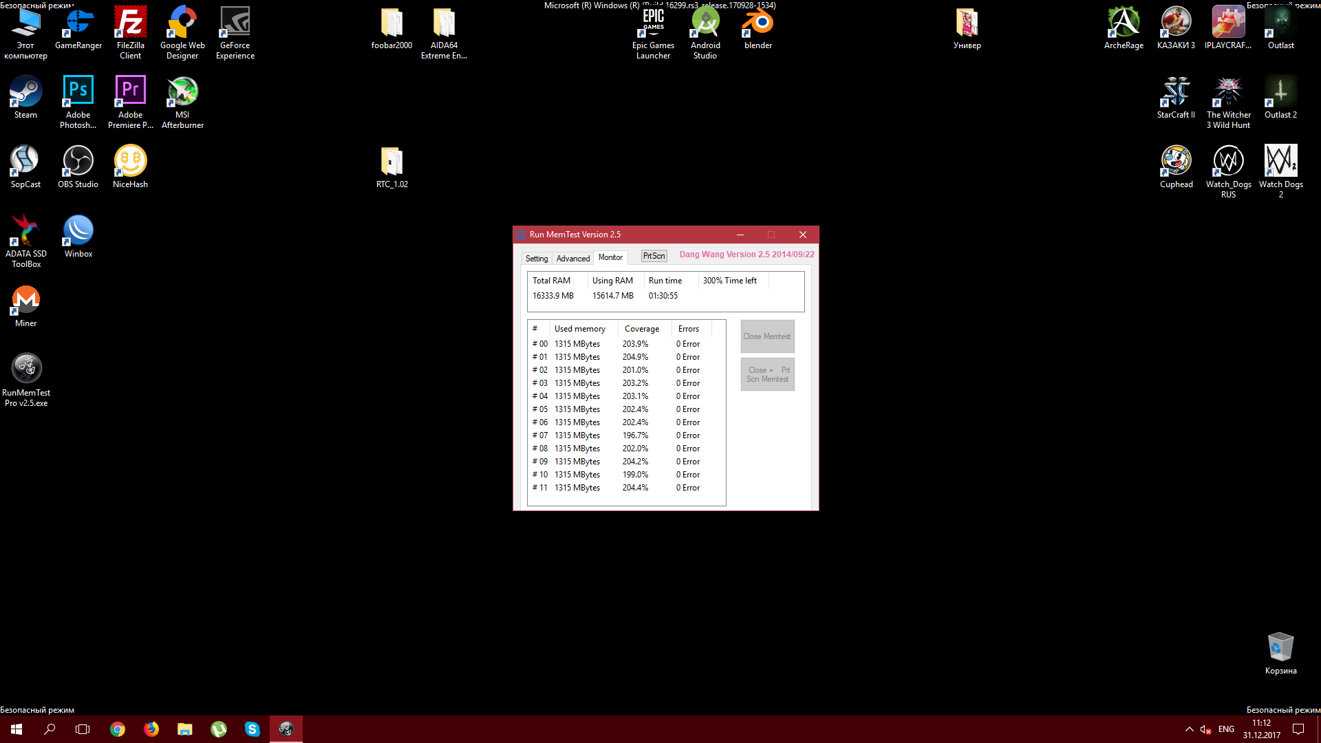 Одновременно с HCI шёл стресстест видеокарты, температура памяти приближалась к 60градусам. На 3200MHz начинаются проблемы с включение и перезагрузкой.