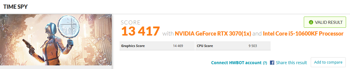 В 3Dmark Time Spy выходит - Graphics Score 4476, и 2687 CPU Score.