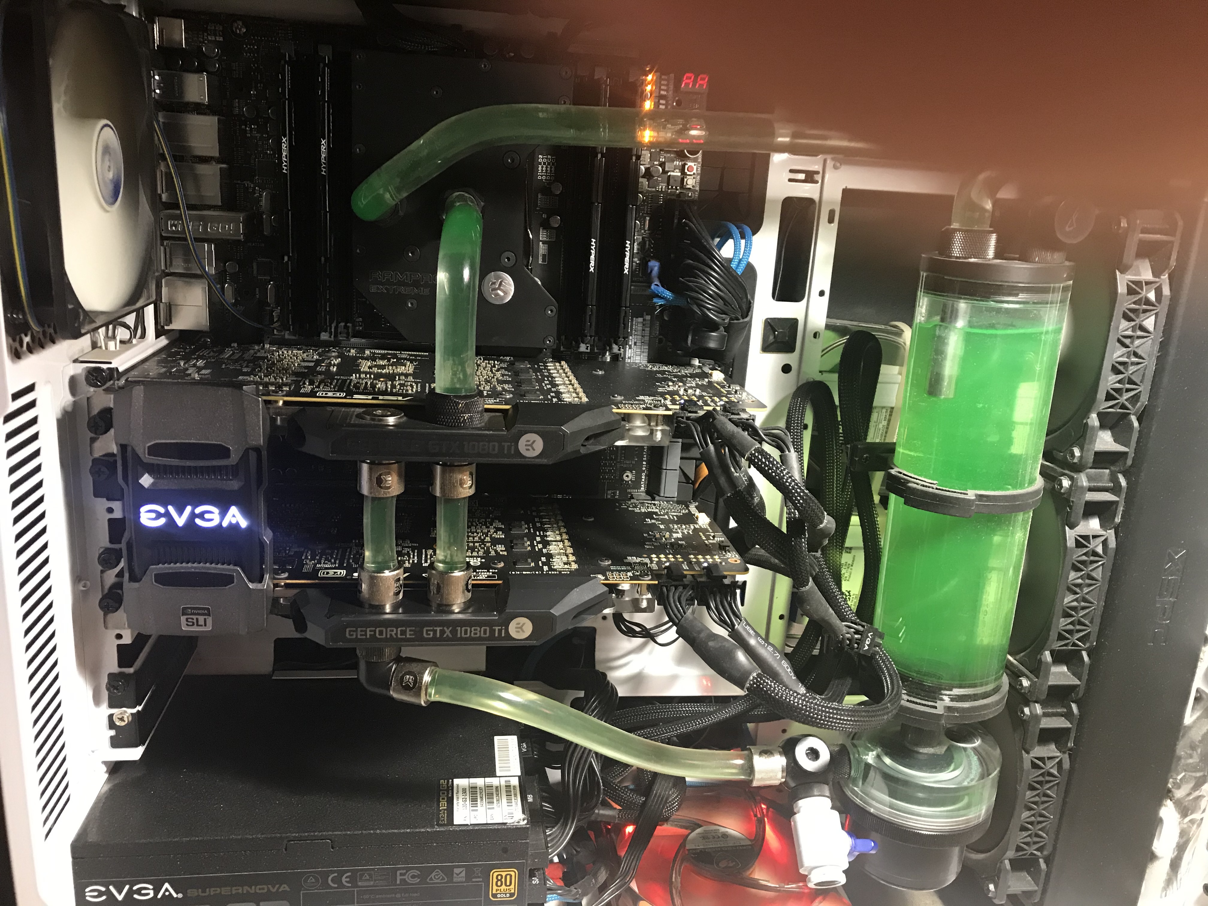 Есть у меня системка с ксеоном 1660V3 (аналог 5960Х) может он 4,5ггц на воздухе, но не сказать что совершенно стабильно... дальше уже перегрев в тестах и тротлинг, на воде конечно уже не так страшно, но нагонять напругу выше ... ради чего циферок в бэнче? на запасной системе ага, ну и 4,366 оно конечно не так красиво как 4,5 зато без проблем (да и реальная производительность не в синтетике идентична) мать хоть и брэндовая но "такая себе" MSI X99S SLI PLUS родной радиатор на ВРМ заменен на водоблок ЕК под другую мать (хоть визуально места посадки были идентичны, практика показала что одна из точек крепления на 2мм дальше и на 0,75мм левее оной на матери под которую водоблок предназначен и пилить и шаманить в итоге пришлось преизрядно)