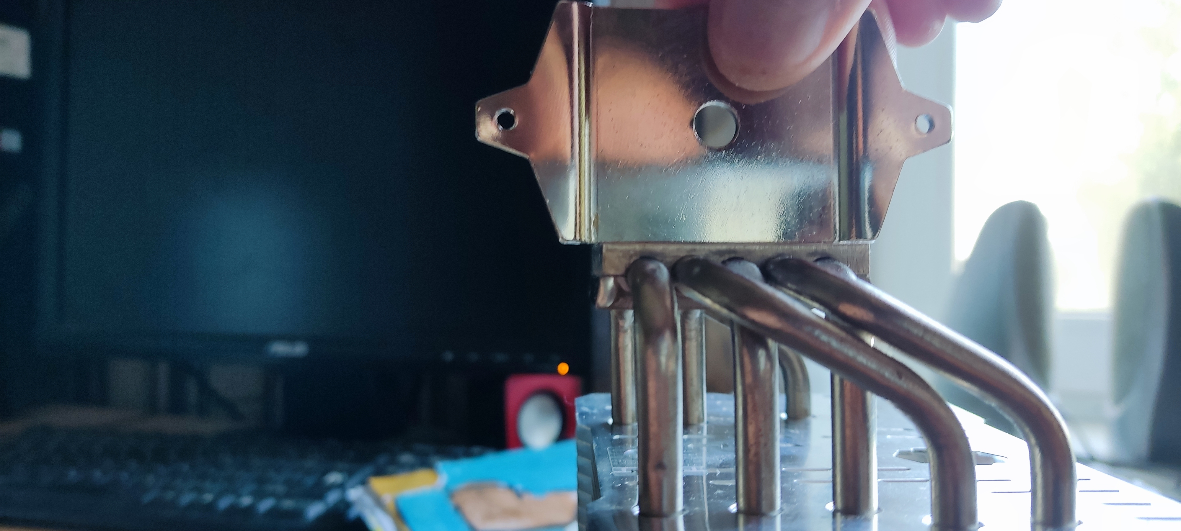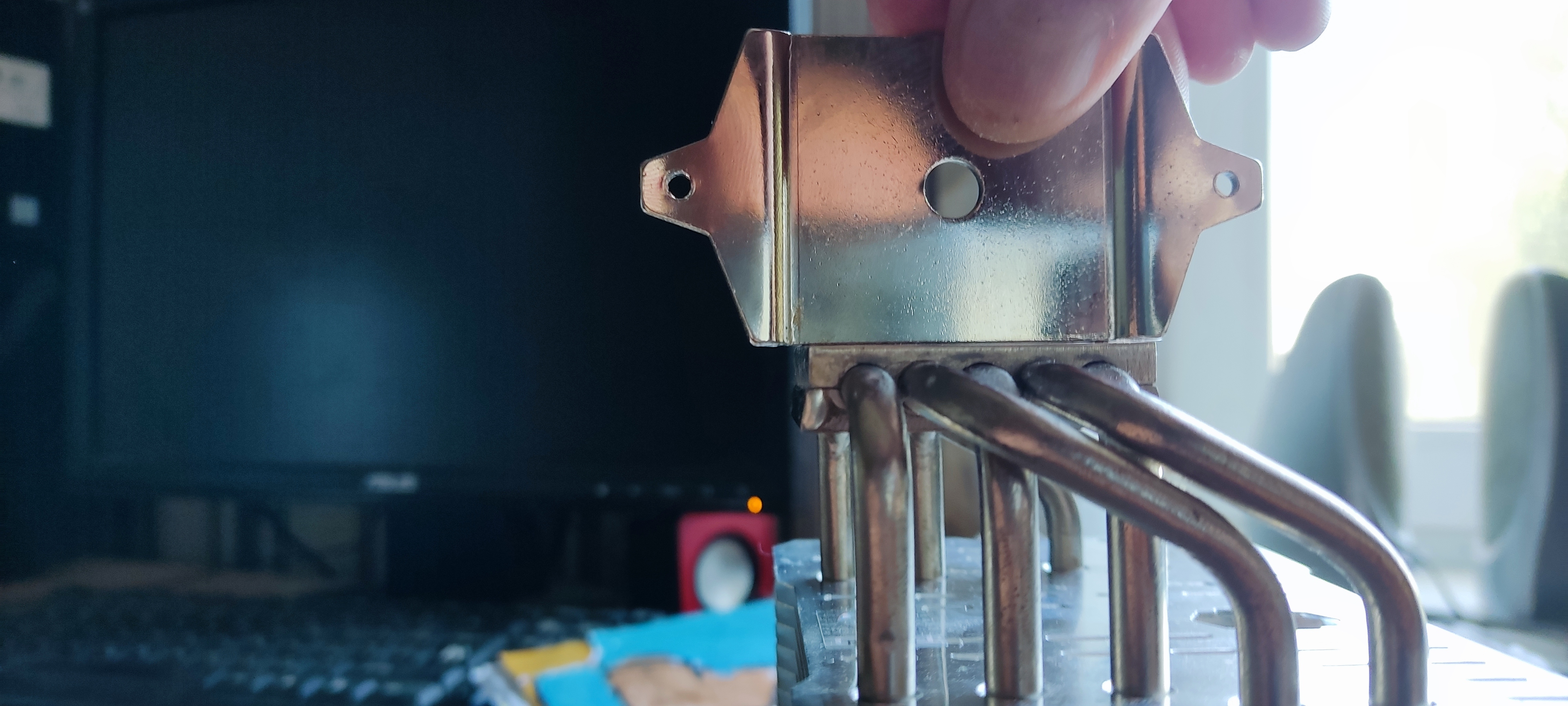 stiffmaster все может быть, это 2 болта которые кулер держат, или 4 которые рамку удерживают? Потому что прижимные которые 2, я точно зажимал сильно, по крайней мере один который в дырке кулера, а вот второй который под вентилятором немного по свободнее