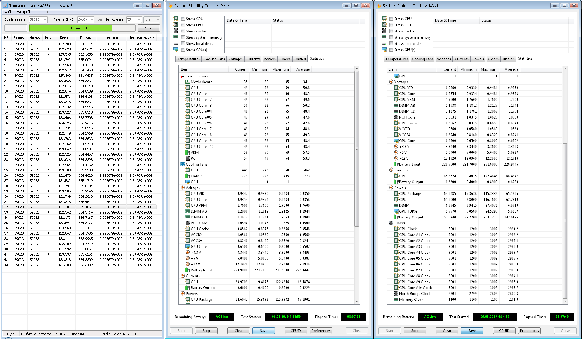 Infreader по большому счету таких нагрузок в реальных задачах, которые дают всякие ОССТ, праймы и линксы не бывает. Имхо если аиду64, сайнбенч р23 и асус реалбенч проходит, то уже хорошо.