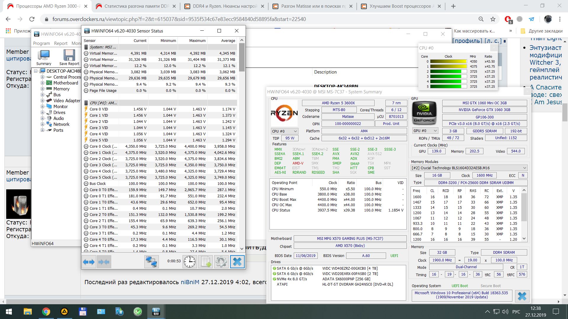 Кто что скажет расскажет? Проц Ryzen 5 3600 память Crusial PC-3733, 18 19 19