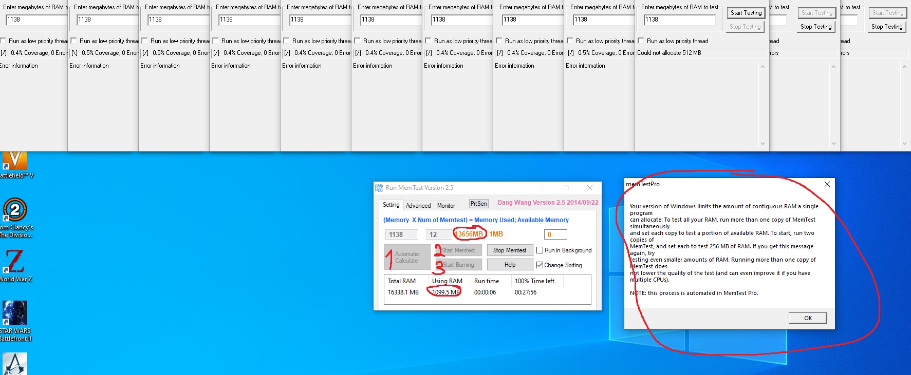 кто какой версией runmemtest пользуется ? и как правильно что там прописывать ? я жму в такой последовательности( цыфрами пометил) а оно мне какие то непонятки и тестирует всего 1 гб, что не так нажимаю