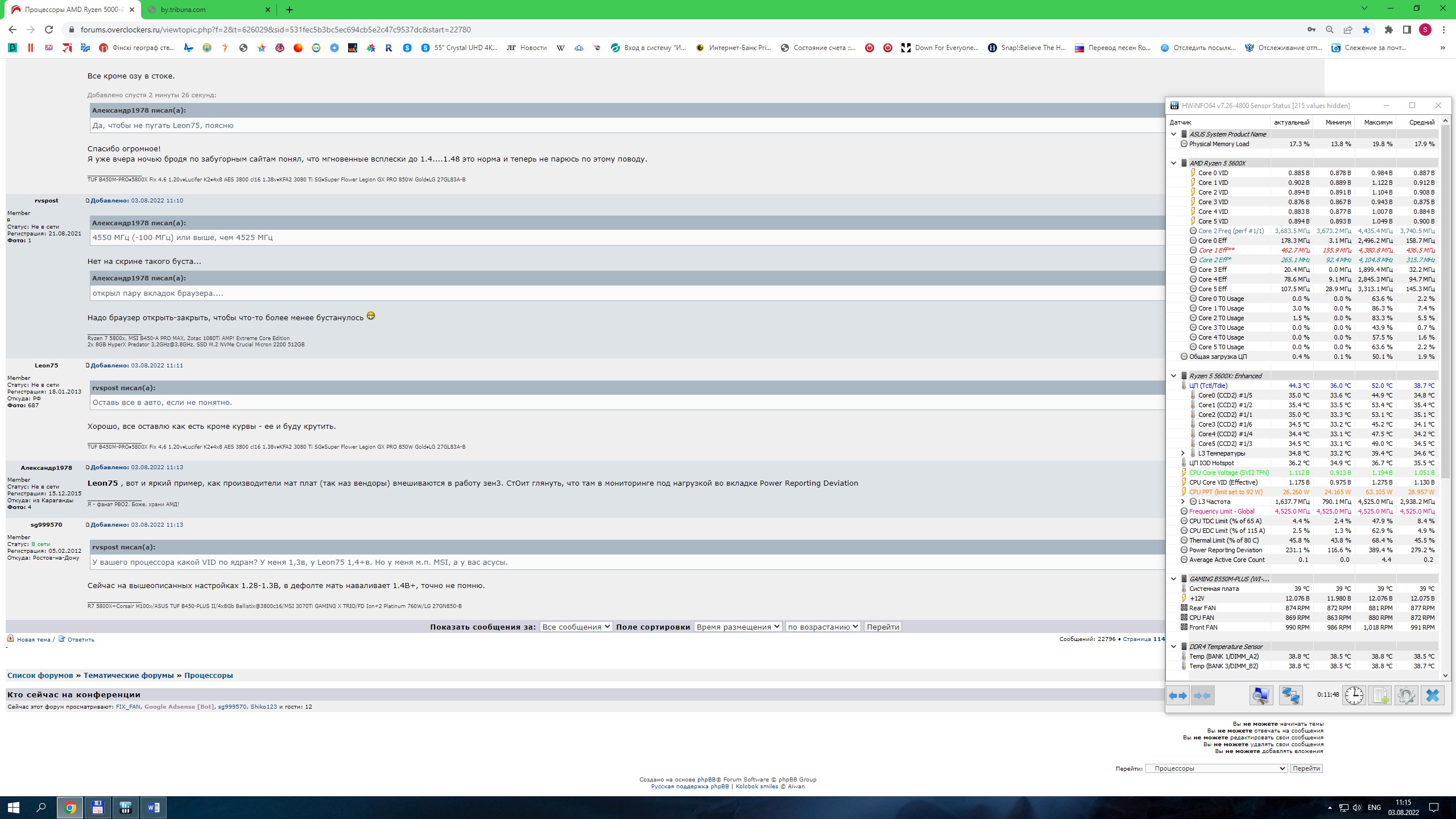 Сейчас на вышеописанных настройках 1.28-1.3В, в дефолте мать наваливает 1.4В+, точно не помню. Вспомнил до 1.45 кратковременно при однопоточной нагрузке, что меня после холодного в стоке 5600Х мягко говоря немного удивило
