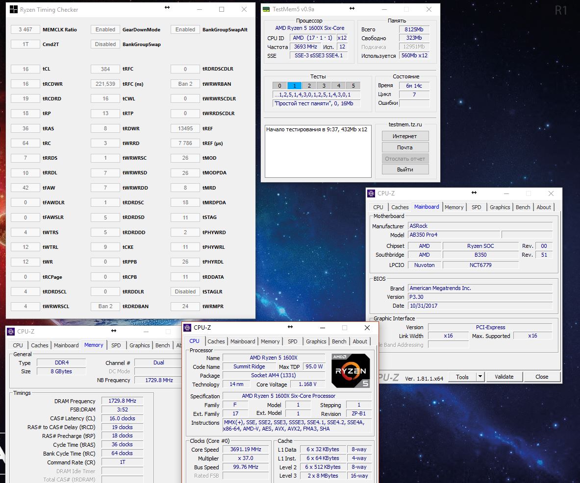 Процессор: AMD Ryzen 5 1600 Память: 16Gb (2x8Gb) Corsair CMR16GX4M2A2666C16 (2666Mhz) Материнская плата: ASUS Prime B350-PLUS (биос последний) Видеокарта: GV-N1060AORUS X-6GB Aorus Xtreme Edition GTX 1060 6Gb Rev 2.0 (Частота памяти 8316Mhz) БП: Seasonic SSP-750RT Ничего не гналось.