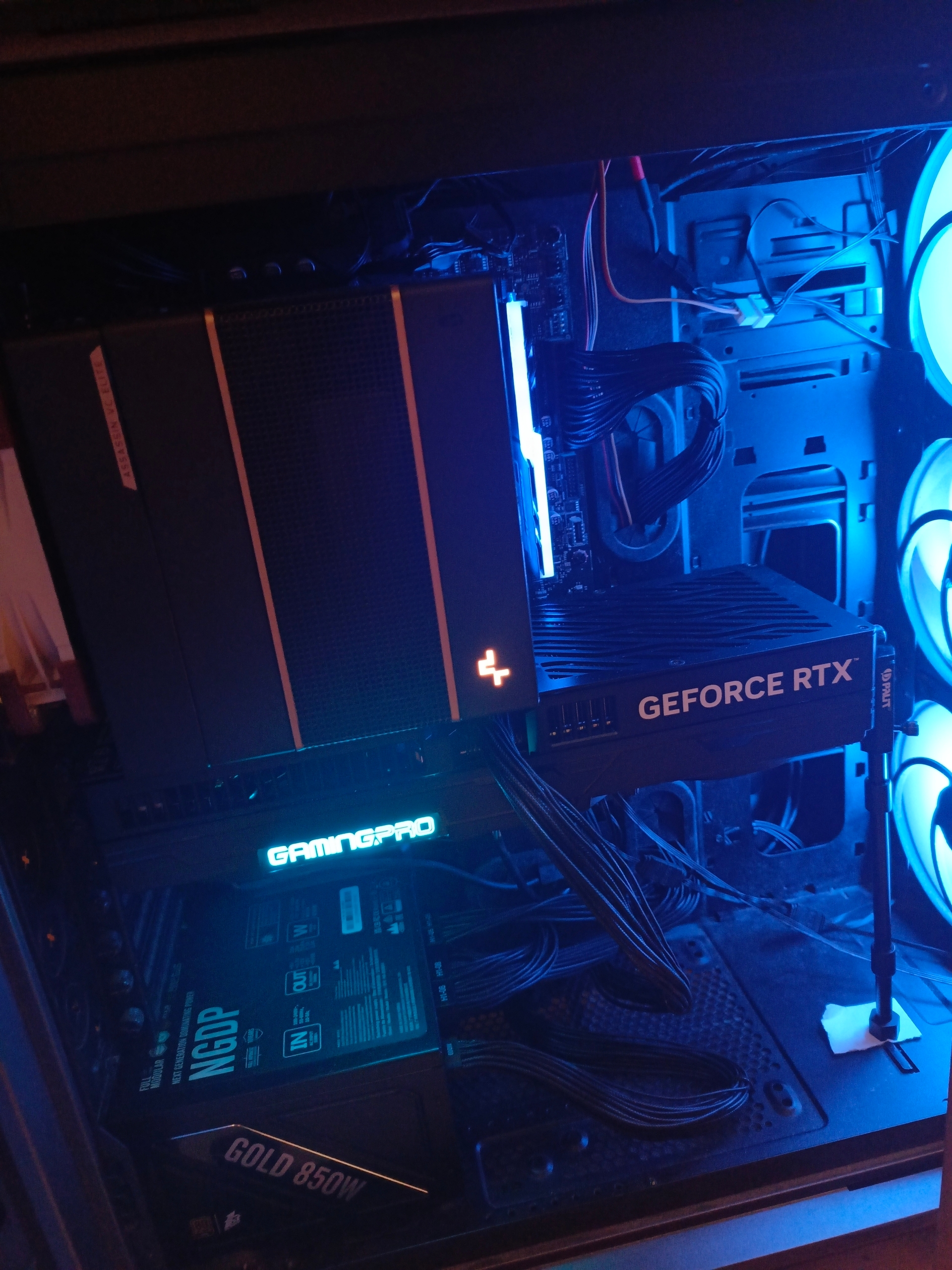 Пару фоток, рамку не могу найти, буду искать))) Ну и чуть колхоза, реобасс присабачил на двухсторонний скотч к ручке. Бумажку подложил под подпорку, а то тупо висела в воздухе) Зазор между башней и куллером на выдув есть, если что.