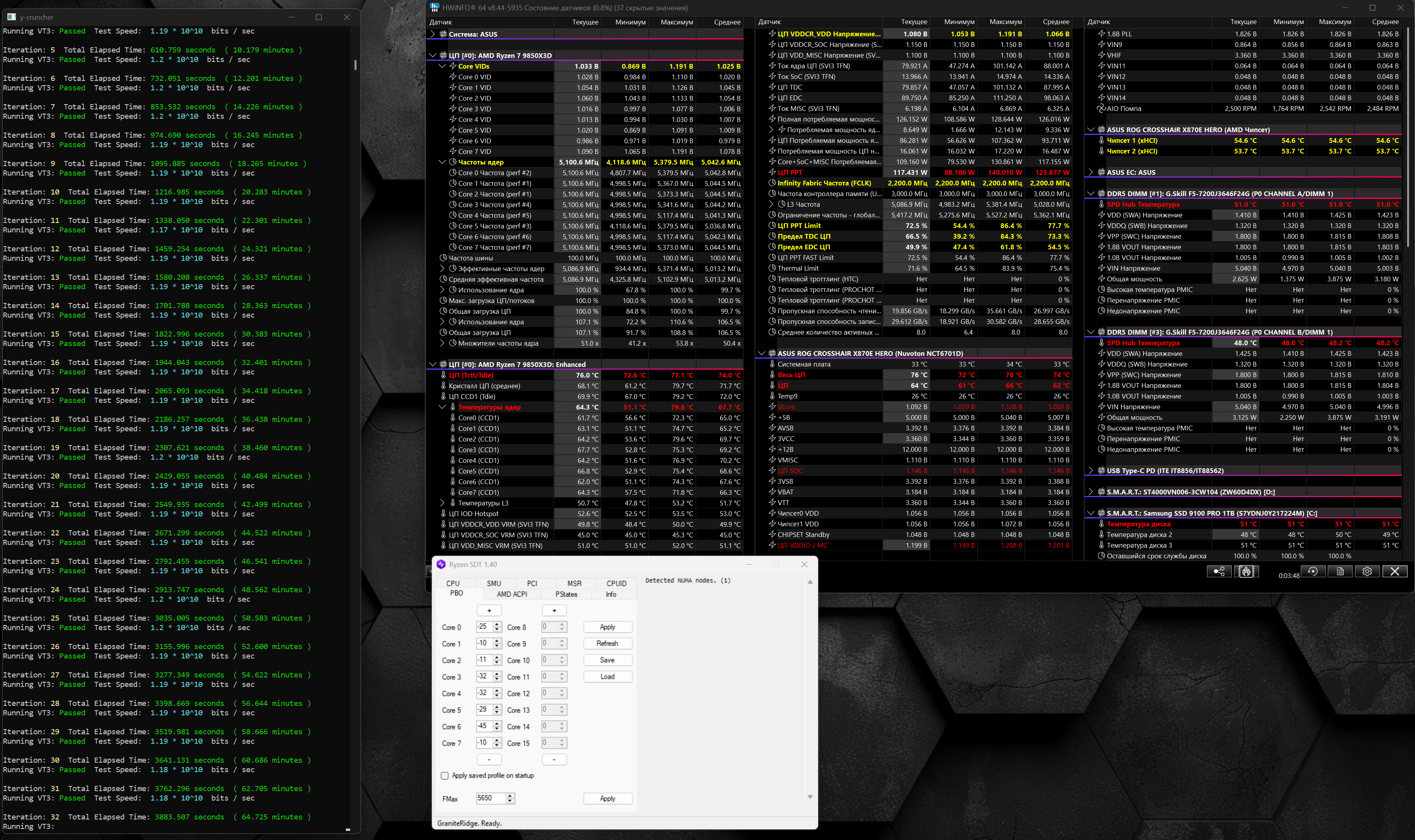vol2008 -14 на седьмом не поедет. Так как я пробовал остальные в ноль скидывать и тестить только 7 ядро. -12 максимум, на -13 ошибки примерно через 10-15 минут. Запустил кранчер VT3 на своих. Пока всё ок.