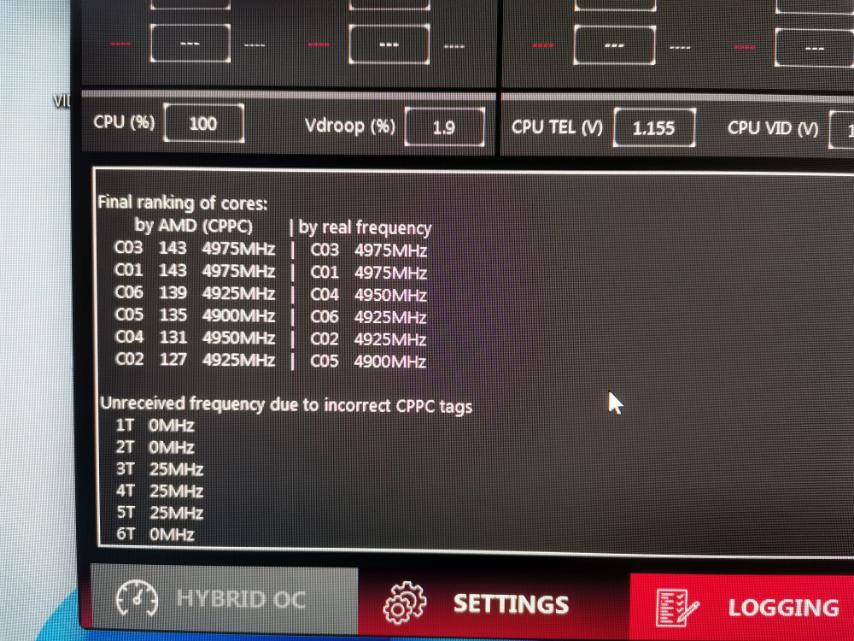 Лично я выставил сразу лимиты по максимуму что может VRM материнки и сколько может переварить охлаждение. Precision Boost Overdrive Scalar чем больше значение, тем позже и менее агрессивно процессор сбрасывает частоты после того как пропала нагрузка. Выставил на максимум. Что касается Load-Line Calibration то для всего кроме VCore выставляю в самое агрессивные значения, хотя и для VCore тоже. Precision Boost берёт во внимание показания именно мониторинга, а не запрашиваемое значение. Мониторинг материнской платы читается Precision Boost`ом через такой протокол как SVI2 TFN. Технология заключается в следующем: 1)выставляем Желаемый VCore Offset, если выставляем его в сторону увеличения, то малопоточная производительность будет выше, если в сторону уменьшения то многопоточная производительность будет выше. Под каждую настройку VCore Offset надо подправлять значения Curve Optimizer, 2)сначала для всех ядер уменьшаем Curve Optimizer, 3)запускаем скрипт, упомянутый выше, повторяем шаг номер 2, пока ни начнёт вываливаться ошибка на одном или нескольких ядрах и откатываемся на один шаг 4)запускаем после этого Cinebench R20, с большой вероятностью система просто перезагрузится, это по большей части лечится добавлением CPU PLL напряжения с 1,8V, но не превышая 1,9V, хотя от чрезмерного напряжения PLL может начаться обратный эффект и стабильность пропадёт, 5)далее начинаем настраивать Curve Optimizer для каждого ядра отдельно и проверяем стабильность как в шагах 3-4.