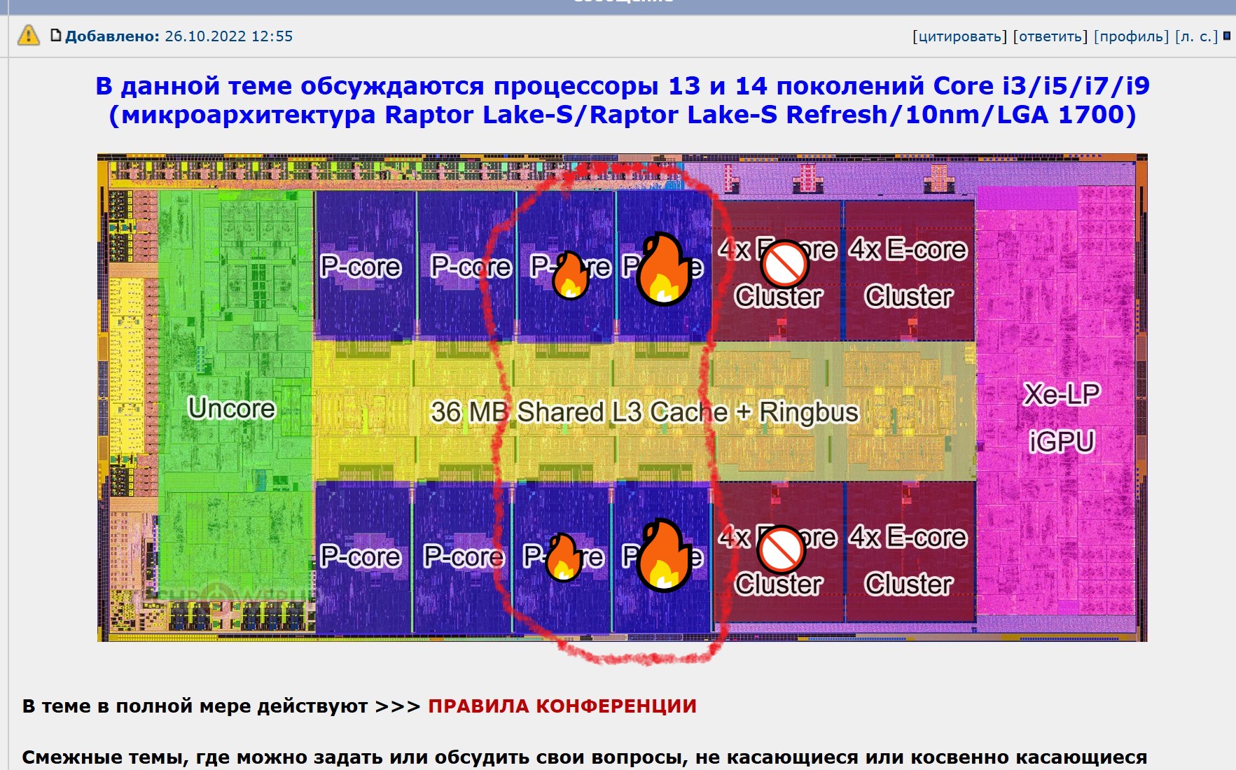 gen2005 отключать целых 12 мелкашей - это глупость. все нормально с этими ядрами. у меня i7-13700K, процессор радует. не понимаю этого всего гонева. обычно гнобят мелкие ядра только те, у кого не было процессоров с мелкими ядрами (это правило).