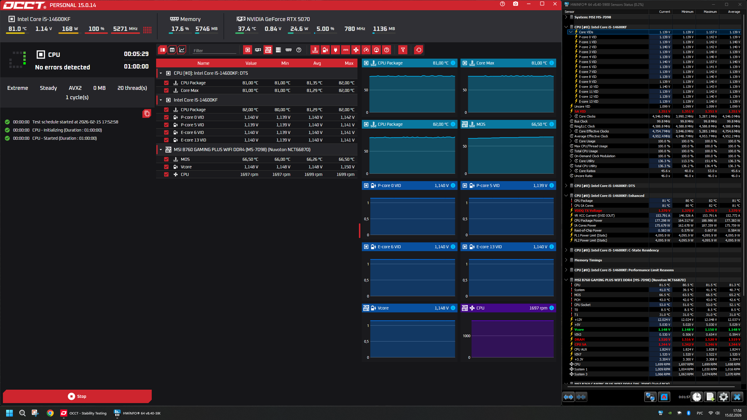 Lite Load 4 -180mv (без ошибок, скрин уже в конце, где нагрузка упала, можно смотреть Average в HWInfo)