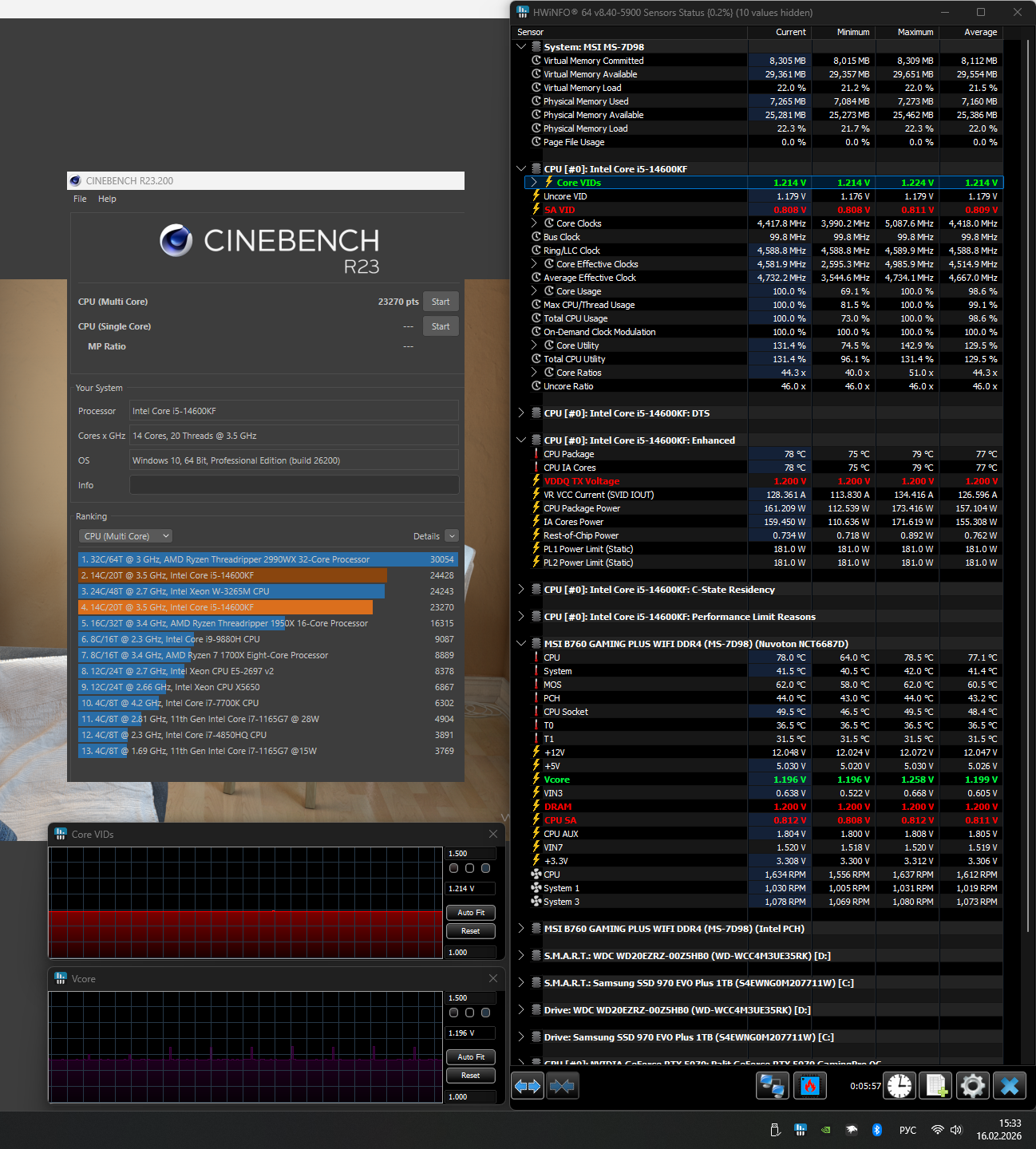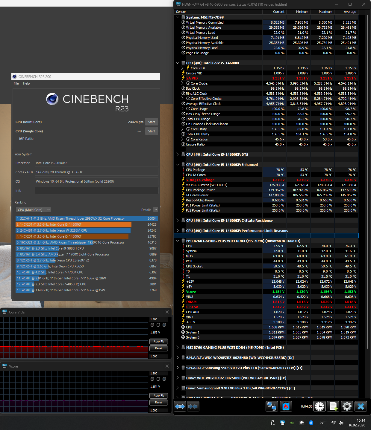 BeeRAbuseR прогони как сейчас cinebench результат, посмотри vcore в HWinfo Sensors, температуры
