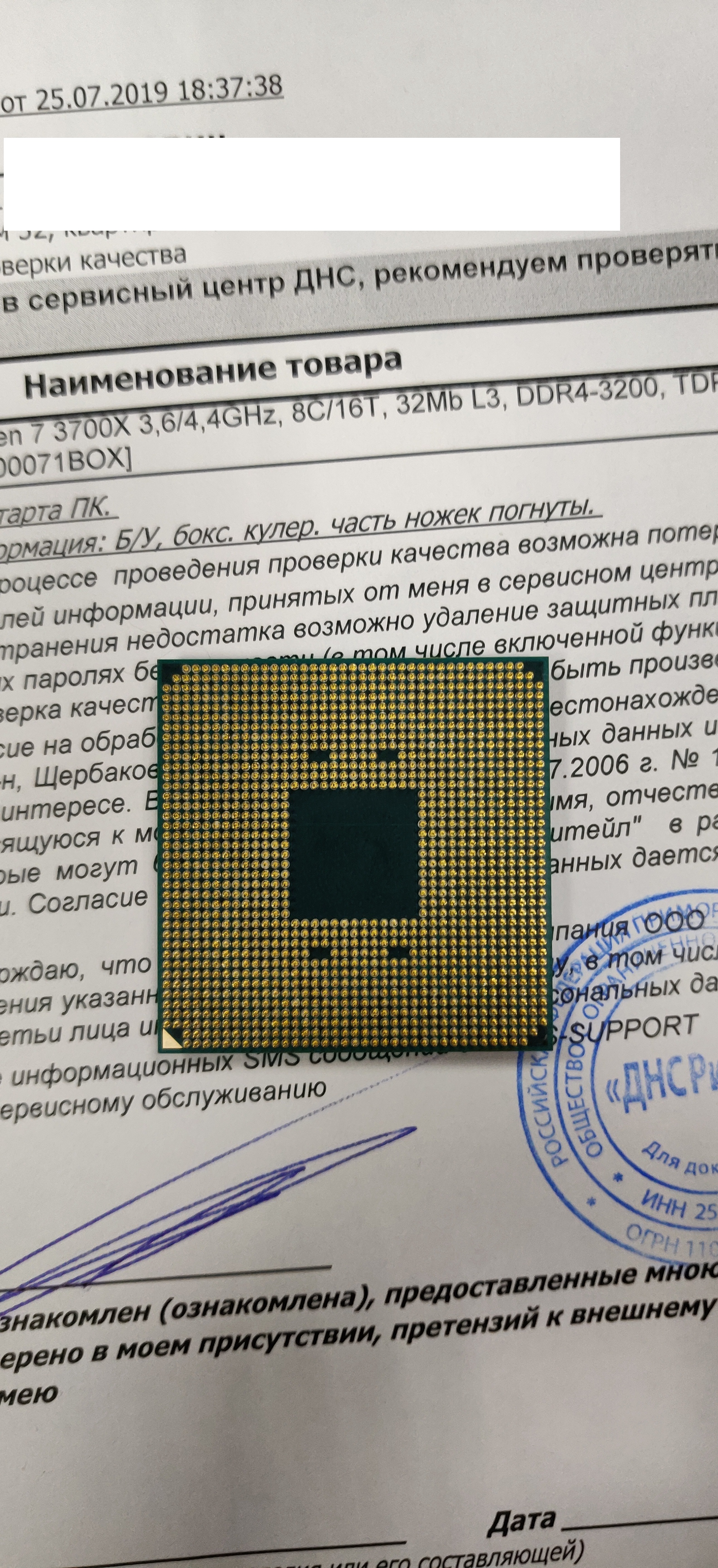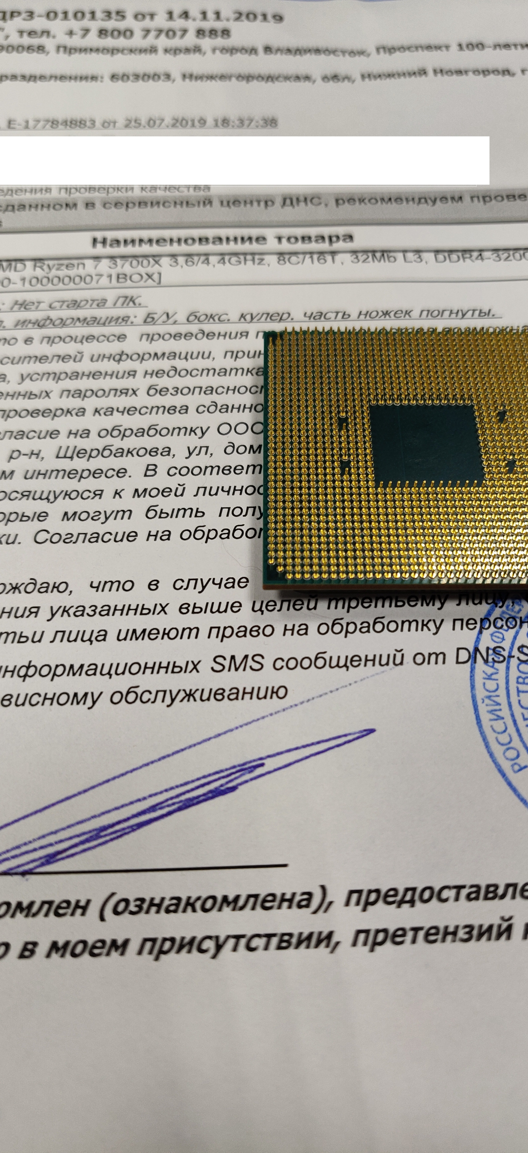 На тебе пруфы. У меня в свое время сдох 3700х, перестал запускаться. Пришел я в днс мне хотели отказать, придравшись к едва погнутой ножке. Ищите ее на фото сами. Когда я предложил назначить экспертизу, взяли процессор на проверку качества и потом вернули деньги.
