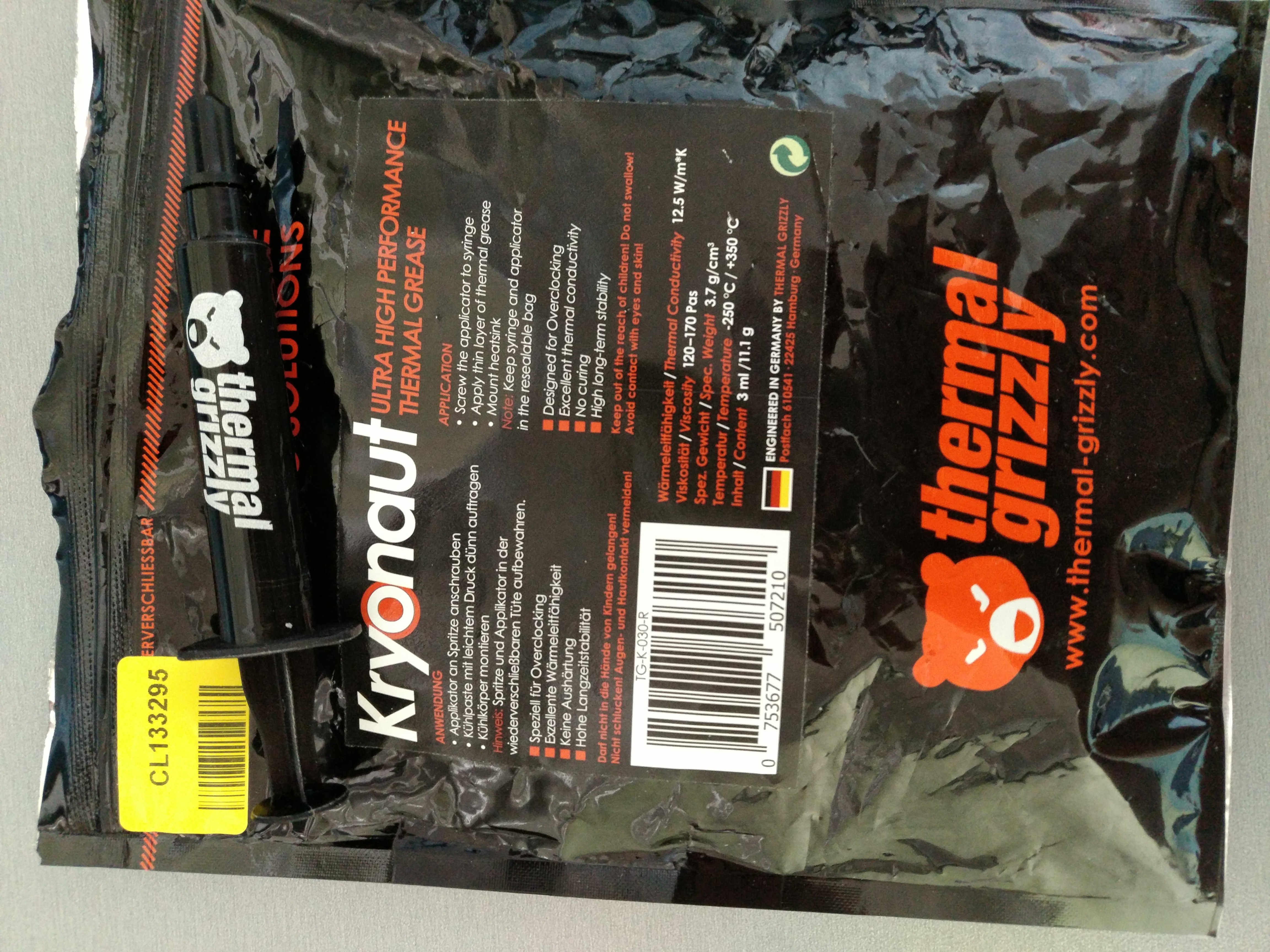 Гризли пробовал - так как наносил впопыхах после снятия ЖМ, получил +5..10 градусов к текущей температуре. Сегодня подвезли Thermalright TFX с 14.3 W/mK. Почти как со свежим ЖМ шпарит. Хуже градусов на 5 только.