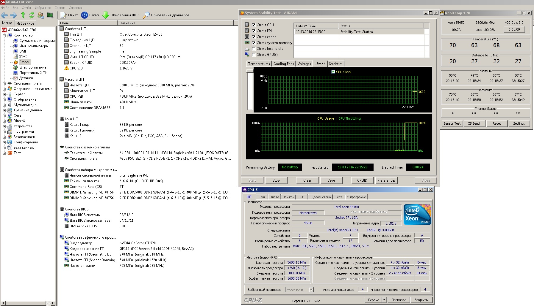 Дело в том, что система постоянно работает при 474х9,5=4503МГц, а вот 500х9=4500МГц запустить гораздо сложнее... Напругу специально накинул побольше чтоб уж точно хватило. Максимально мне удалось взять 500МГц по шине, при 501 винда уже не стартует. Может подкопить да заказать X5470? Все равно собираю вторую машину, и туда ксен надо будет втыкать.