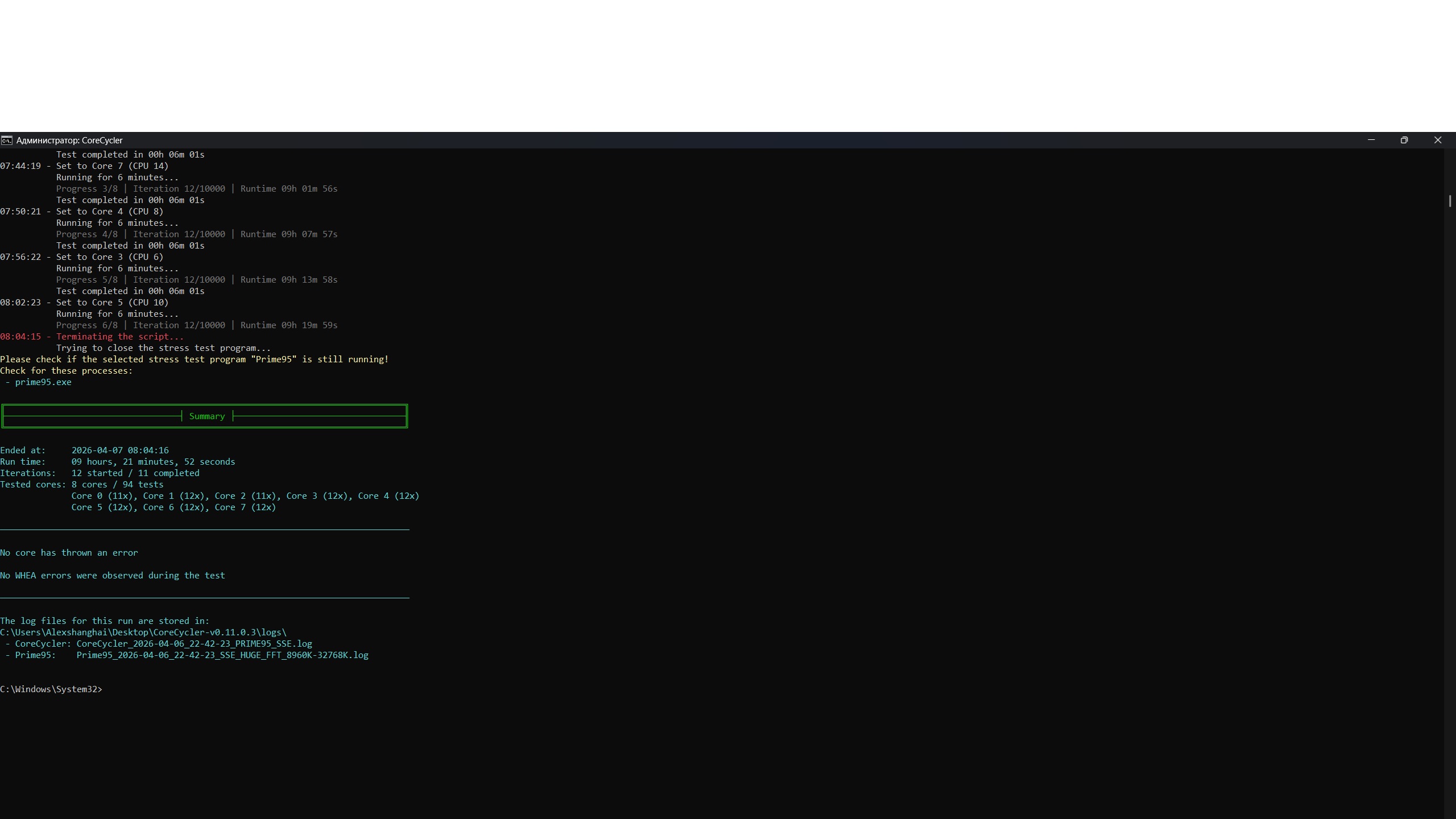 на ночь CoreCycler-v0.11.0.3 поставил 9 часов и тоже ничего что еще можно?