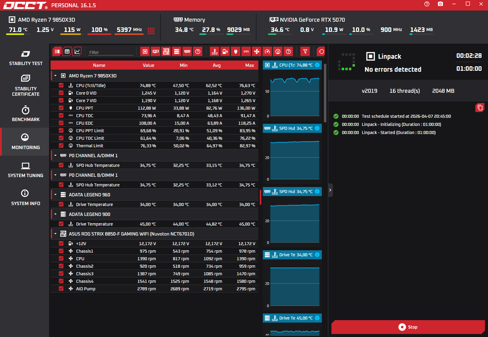 по таким скринам не чего не понятно. я же скинул линпак его прогоните и циферки с hw info посмотреть бы. а то по вашим скринам проц 50°. да и осст не мешало бы обновить.