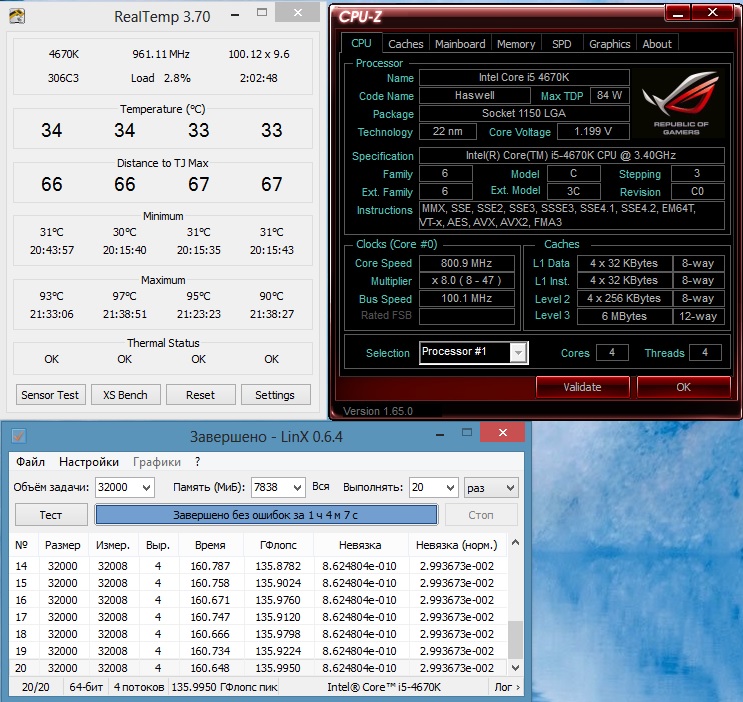 Asus Z87-Plus "Мерял" в биосе при дефолтных настройках с выключенным турбо. Кто, где и зачем стоит? Сейчас только множитель 47, напряжение 1,2 на ядре, 1.98 входное, + память в процессе разгона тестерую 32гб samsung 2133 с вкусными таймингами. Все. Я пока даже vring и прочие настройки не трогал, после замены на ЖМ буду тюнить, пока хочу на одинаковых сравнить.