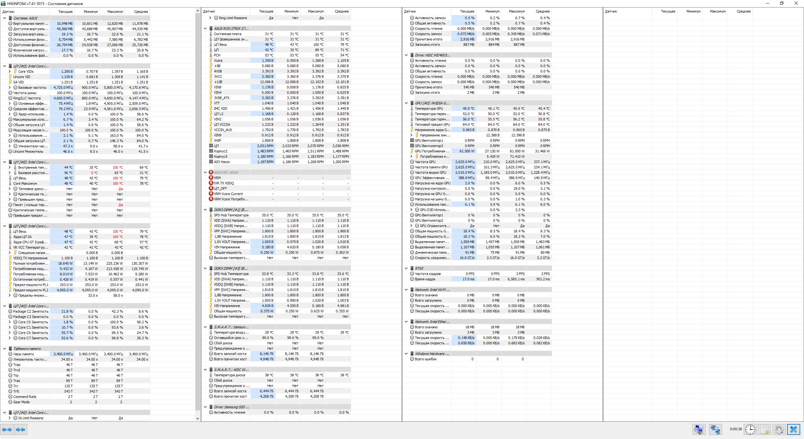 Мин. частота в синебенч -4593, график частоты во время прогона ровный. Просадки в начале и в конце - это до прогона и сразу после, т.е в состоянии простоя.