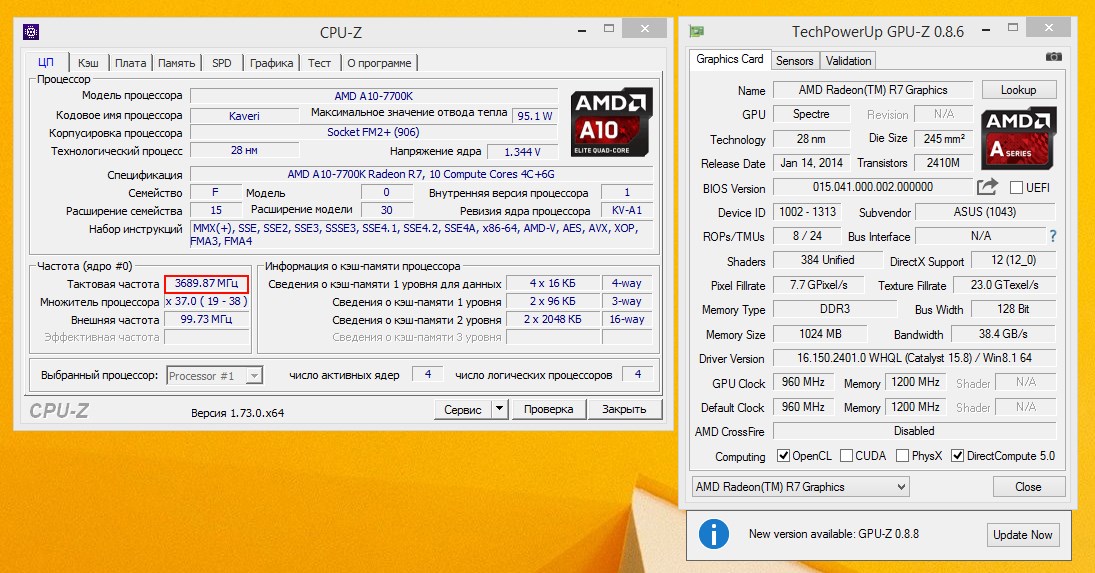Это позволило APU брать более высокие частоты процессорной части при том же или даже меньшем потреблении. В среднем Godavari имеют на 200-300МГц лучший разгон, чем Kaveri, что может быть плюсом в процессорозависимых задачах.