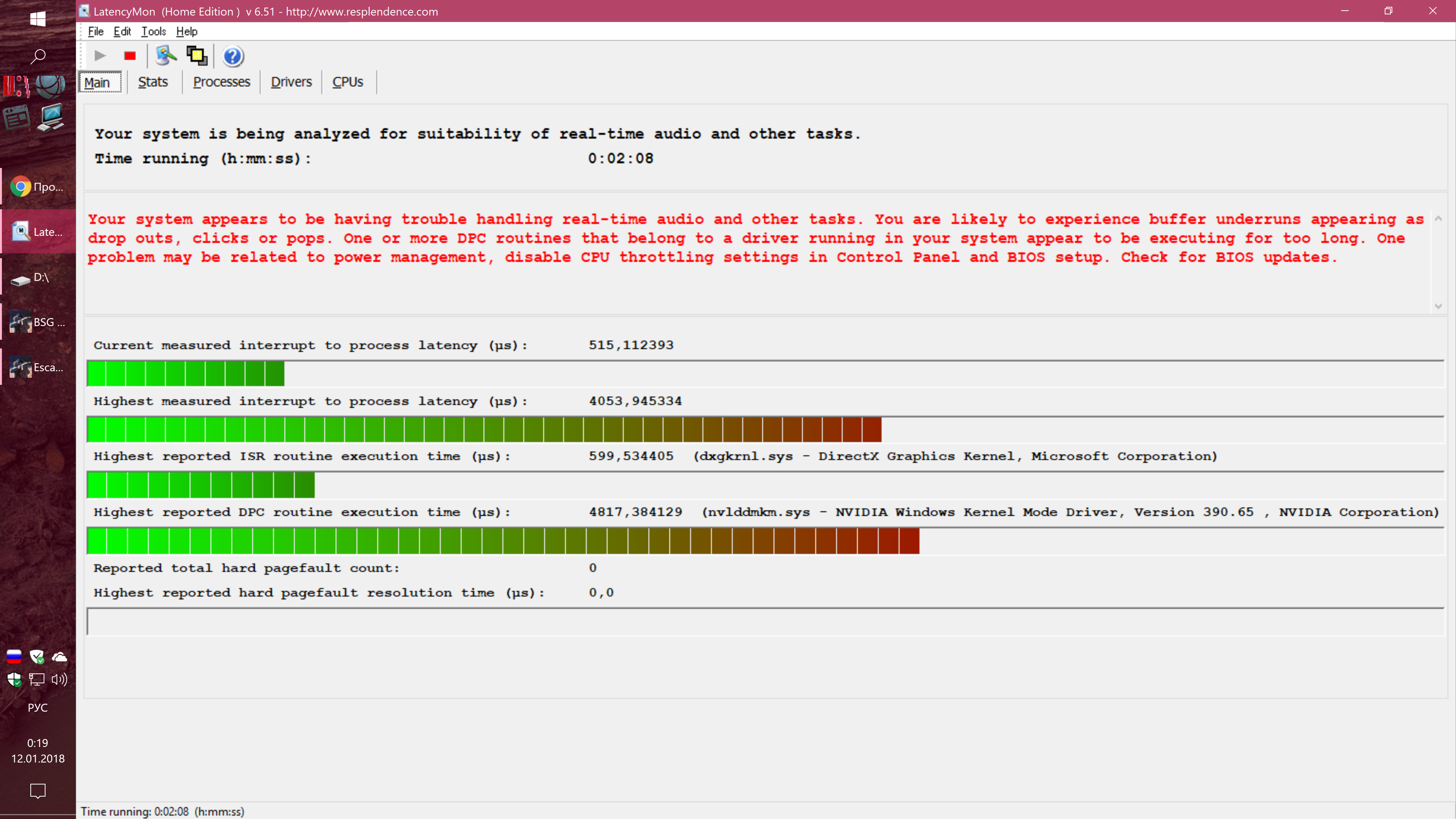 Буду ковырять, спасибо всем за помощь. А latencymon как пользоваться? У меня красным пишет, что то типа проблемы с аудио в реальном времени, что то с буферами, уберите мол настройку троттлинга. Проц в линксе греется до 75 максимум, в играх - 60-63.
