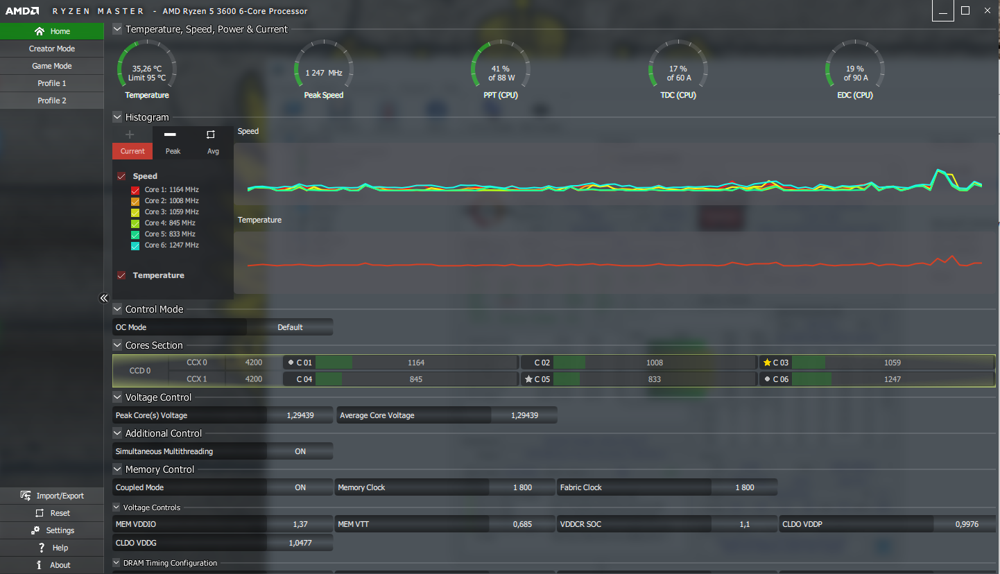 rangersdark Попробуйте так. Хотя, например, если с этим профилем юзать Cinebench R20, то он мне 3200 дает очков, видимо, буст на срабатывает, без этого профиля 3700+. D В играх буст до 4.2 поднимается. Так что вроде нормально профиль работает
