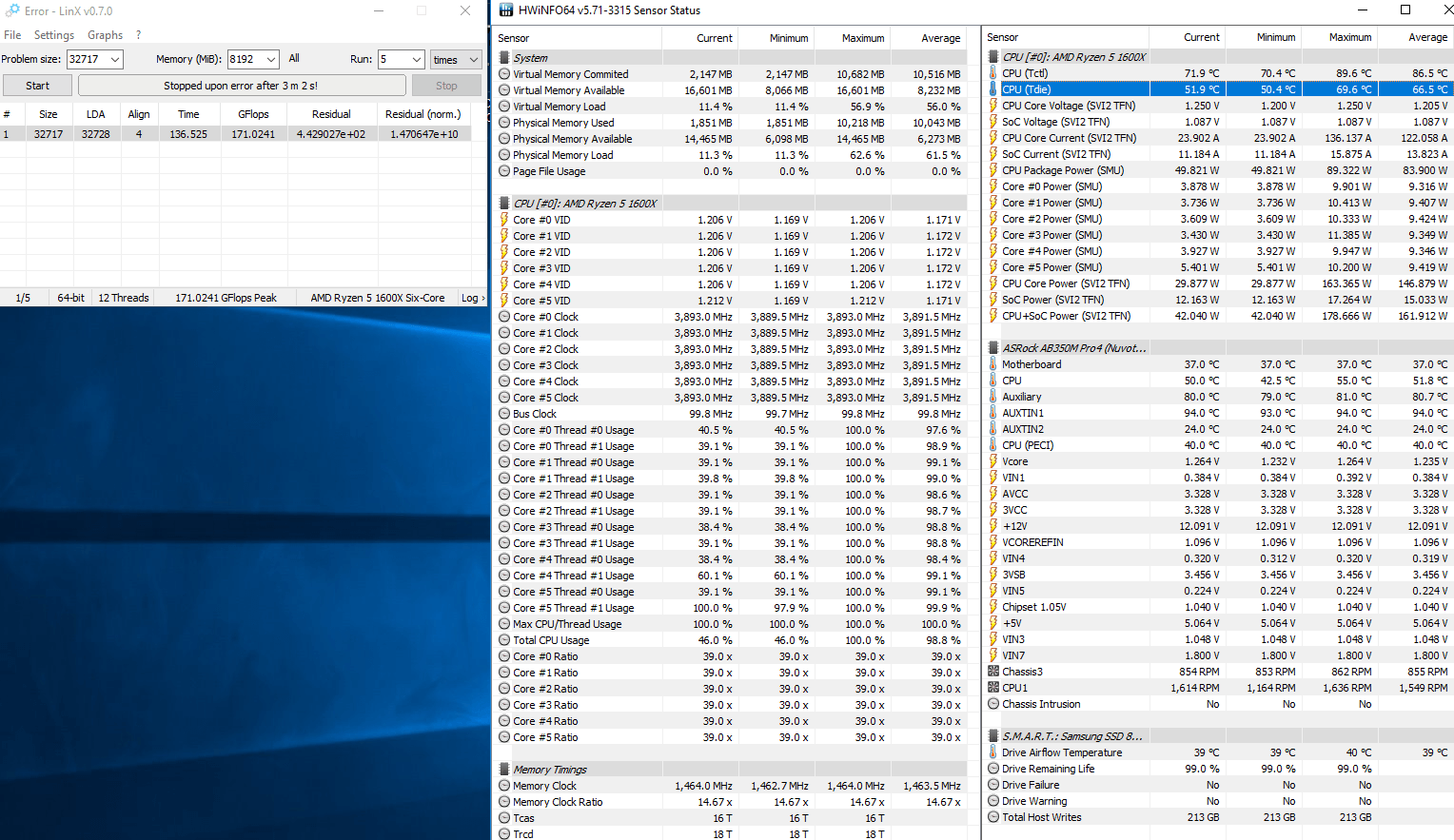 Но если вы хотите стабильность в 99,9999% задач, - стоит выставить доступный объем оперативной памяти для теста за минусом 1-2гб поставить 10-20 прогонов и запустить какую-нибудь легкую игру для задействования видеокарты на время теста. Включить мониторинг и следить за ростом температуры первое время, а заодно за потемнением экрана)). Тест должен завершиться без невязок и ошибок.